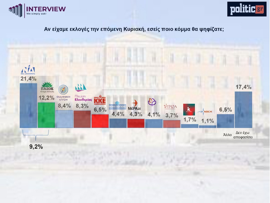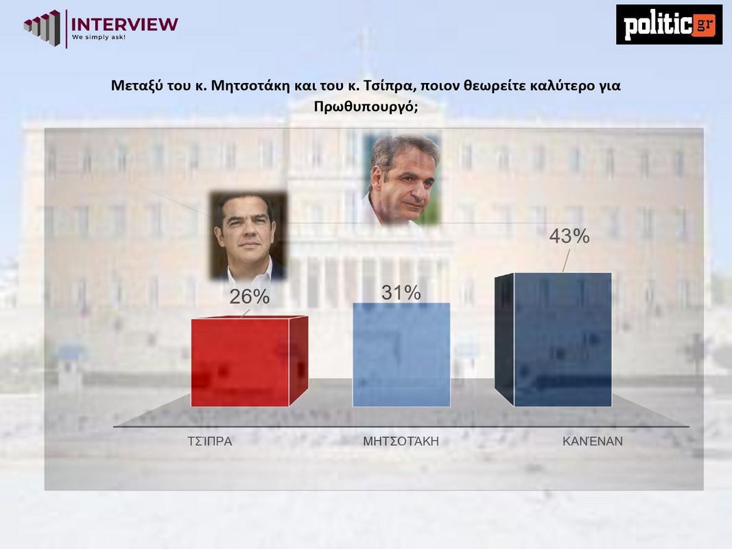 Δημοσκόπηση Interview: Πτώση ΝΔ σχεδόν 5 μονάδων – «Κοντά» ο Αλέξης Τσίπρας στην καταλληλότητα για πρωθυπουργός (ΦΩΤΟ)