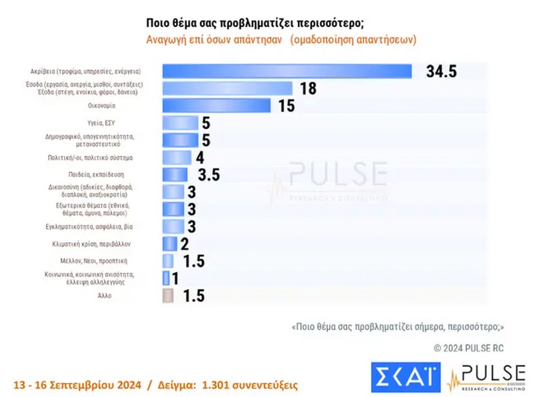 Ως σημαντικότερο πρόβλημα των πολιτών καταγράφεται η ακρίβεια και στη συνέχεια ο οικογενειακός προϋπολογισμός.