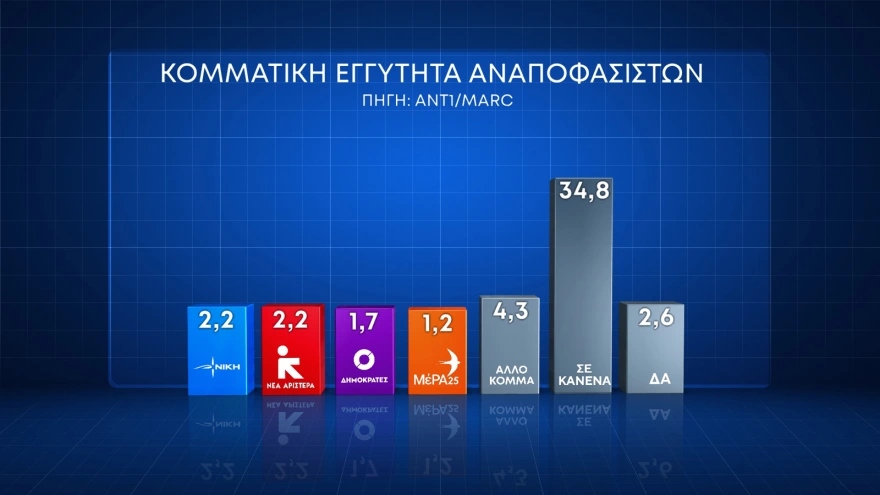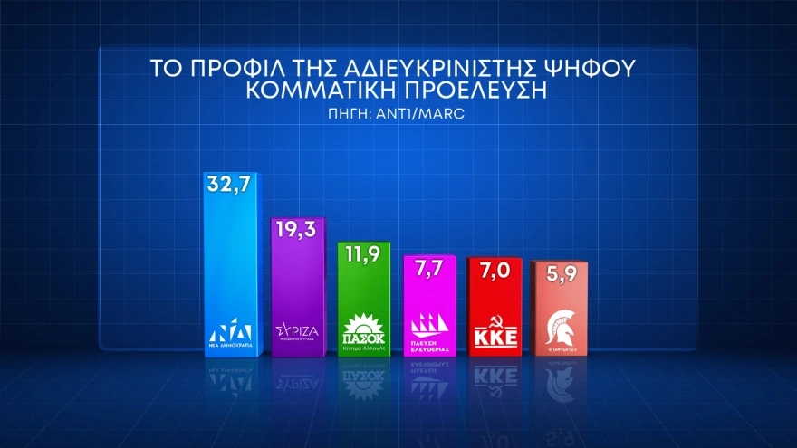 Πρώτη δύναμη στους αναποφάσιστους είναι η ΝΔ καθώς η «κομματική εγγύτητα» με το κυβερνών κόμμα είναι στο 16,1%.