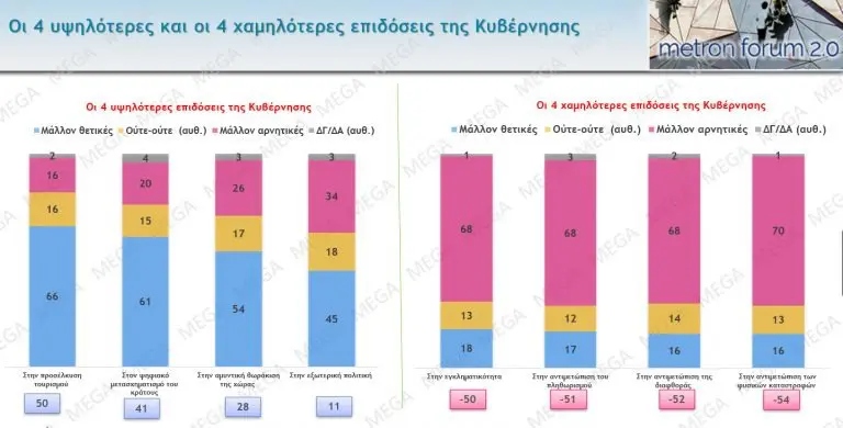 Αντιθέτως, ο Στέφανος Κασσελάκης έχει μόνο 31% θετικές γνώμες, με τις αρνητικές να φτάνουν το 54%.