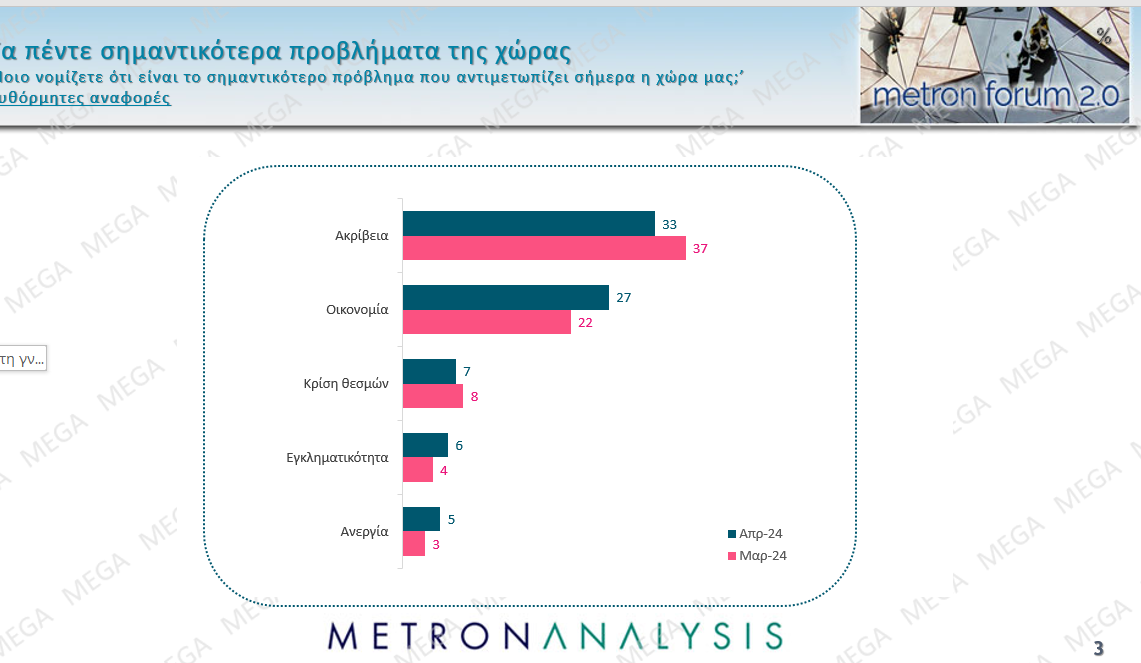 Δημοσκόπηση Metron Analysis: Προς… λάθος κατεύθυνση η χώρα – «Αγκάθι» η ακρίβεια