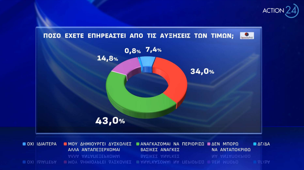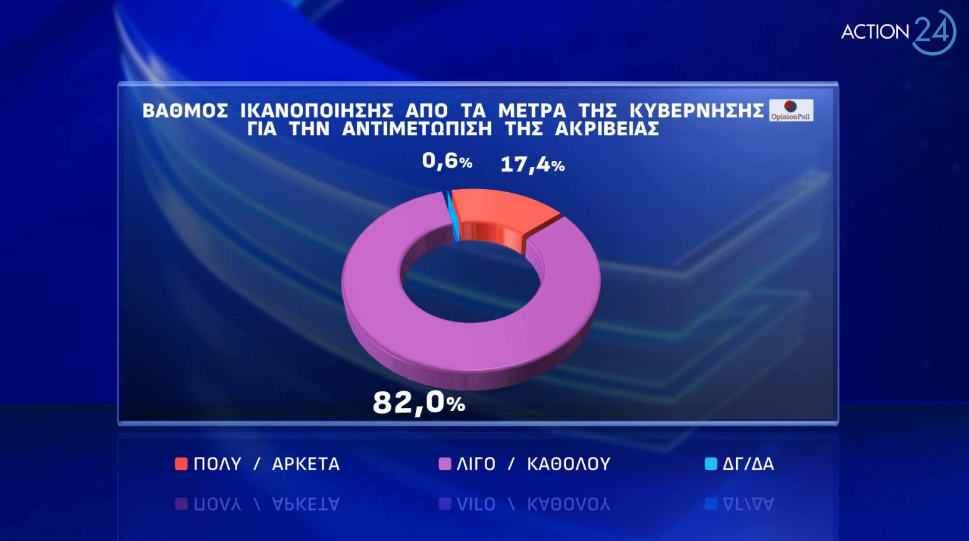 Η ακρίβεια παραμένει το νούμερο ένα πρόβλημα των πολιτών, ενώ το 70,3% δεν είναι καθόλου ικανοποιημένο από τους χειρισμούς της κυβέρνησης ως προς τη διαλεύκανση της τραγωδίας των Τεμπών.