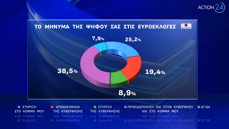 Σύμφωνα με τα ευρήματα της έρευνας η πλειοψηφία σε ποσοστό 38,5% θέλει να στείλει μήνυμα προειδοποίησης στην κυβέρνηση και στο κόμμα, το 25,2% θέλει να στηρίξει το κόμμα του, το 19,4% θέλει να αποδοκιμάσει την κυβέρνηση ενώ το 8,9% θέλει να στηρίξει την κυβέρνηση.