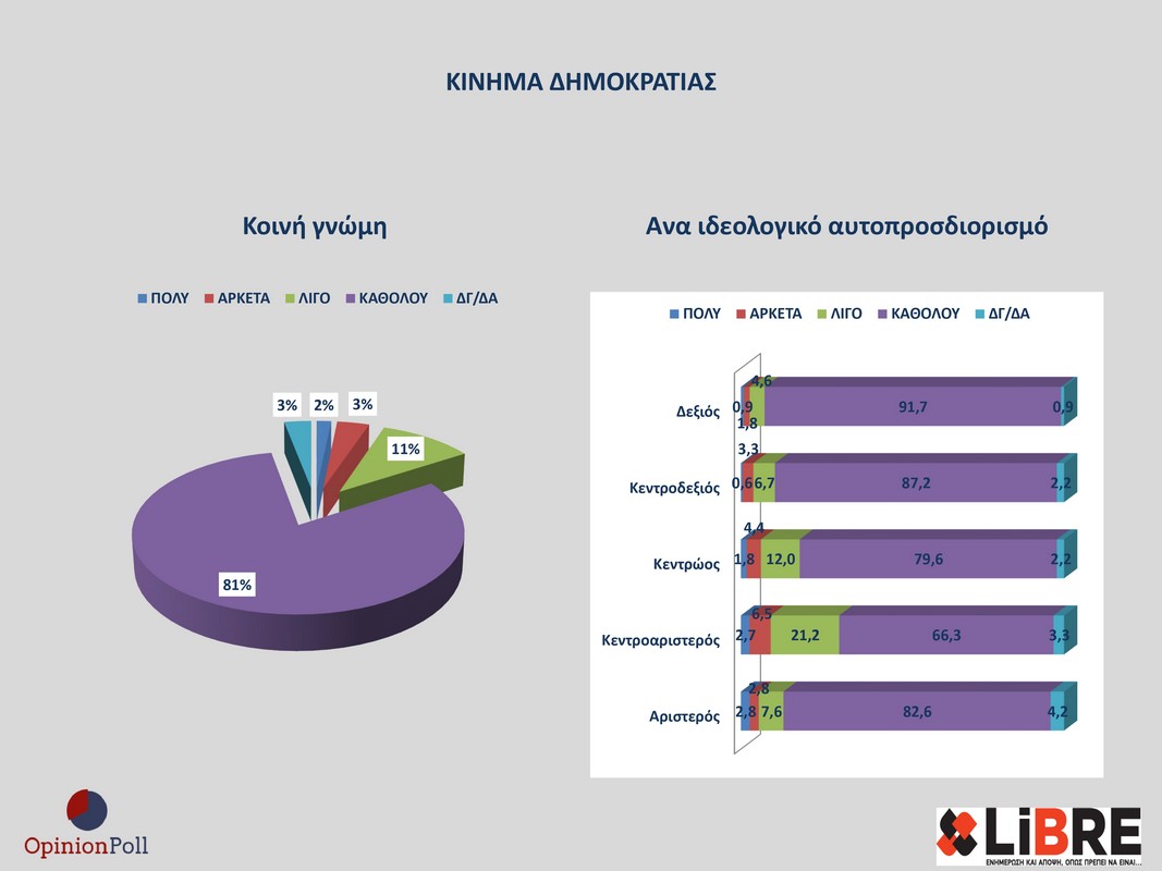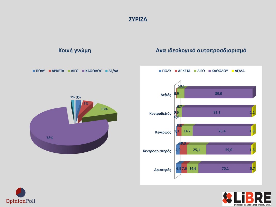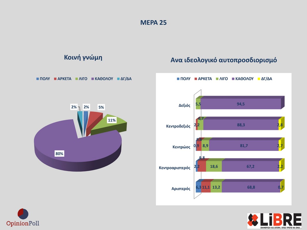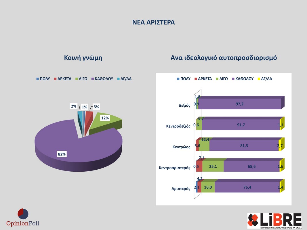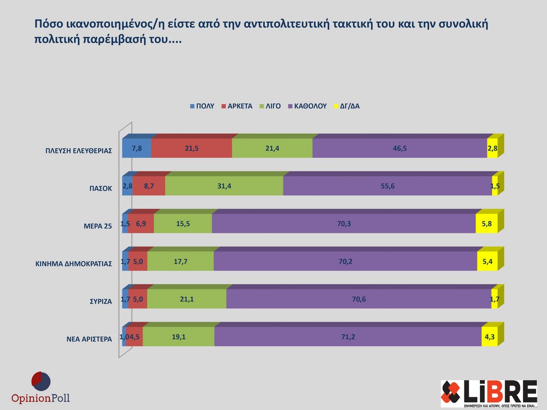 Είναι χαρακτηριστικός ο μικρός βαθμός ικανοποίησης από την αντιπολιτευτική τακτική τους ενώ σε σχέση με το ποια κόμματα θεωρεί ως κεντροαριστερά η κοινή γνώμη “ανέδειξε” ως “νικητή” το ΠΑΣΟΚ με ποσοστό 48.4% ενώ ακολουθεί ο ΣΥΡΙΖΑ με 42.6%.