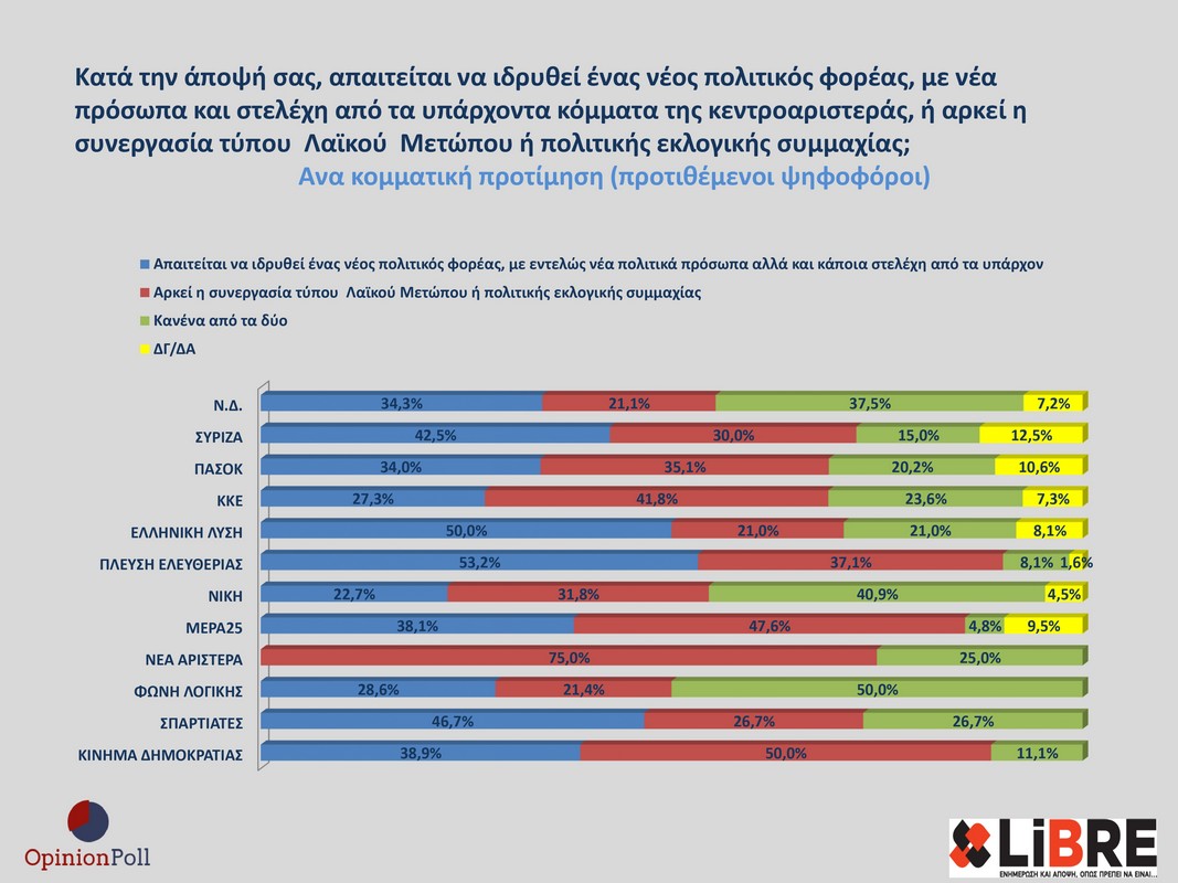 Tα αποτελέσματα της έρευνας για τις διεργασίες και τις προοπτικές του χώρου της ευρύτερης Κεντροαριστεράς που πραγματοποίησε η OPINION POLL για λογαριασμό του libre.gr αναδεικνύουν σημαντικά ευρήματα.