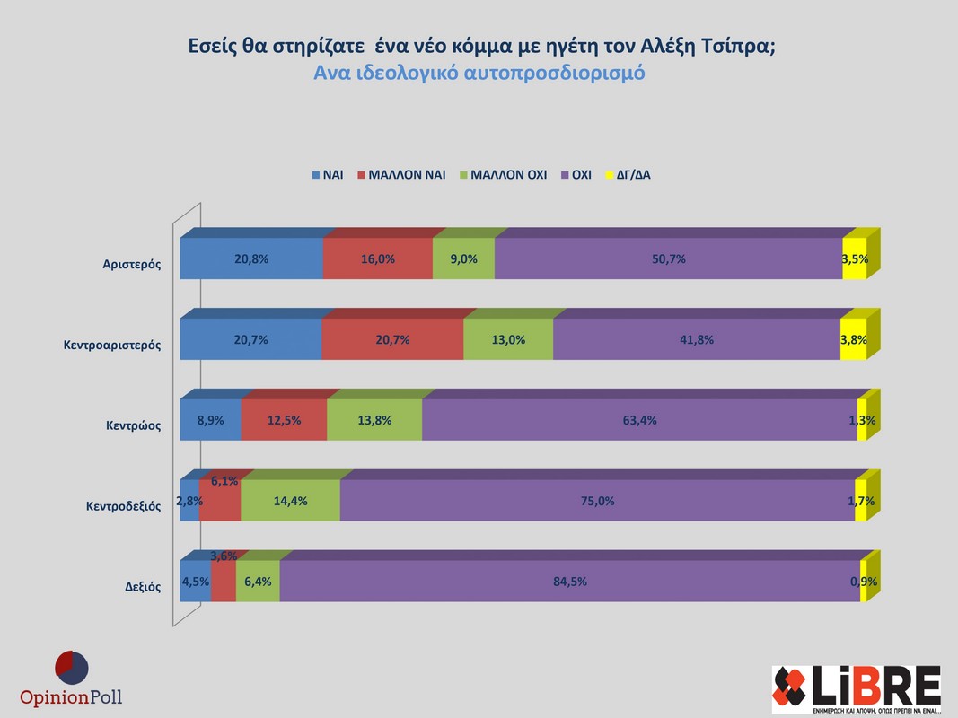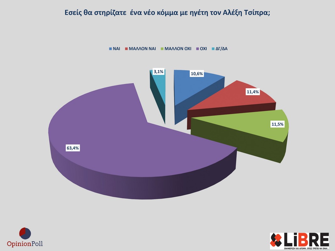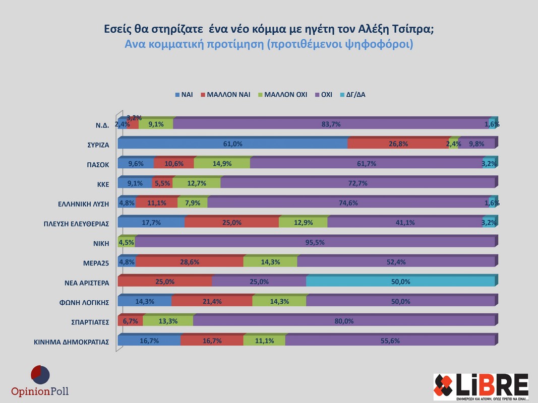 Tο 22% δηλώνει ότι θα στήριζε ένα νέο κόμμα με ηγέτη τον Α. Τσίπρα , με το 74.9% να κρατάει αρνητική στάση.