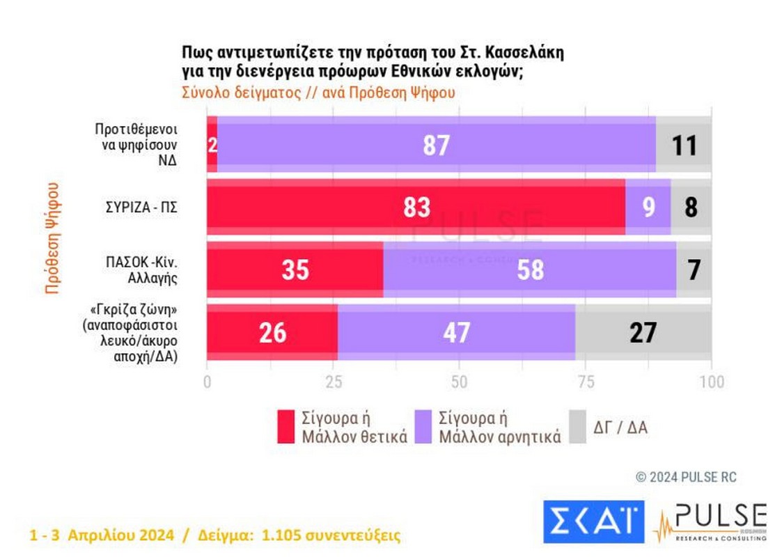 Παρά το αίτημα του προέδρου του ΣΥΡΙΖΑ Στέφανου Κασσελάκη για πρόωρες εκλογές, αρνητικοί εμφανίζονται οι πολίτες.