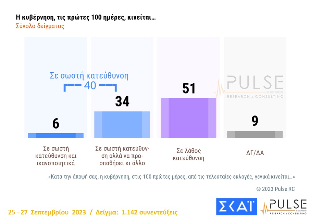 Ωστόσο, τον κώδωνα του κινδύνου για την κυβέρνηση κρούουν δύο ευρήματα της δημοσκόπησης, αφού το 51% θεωρεί πως κινείται προς λάθος κατεύθυνση.