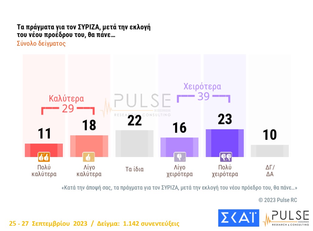 Στο ερώτημα «κατά την άποψή σας, τα πράγματα για τον ΣΥΡΙΖΑ, μετά την εκλογή του νέου προέδρου του, θα πάνε…»: