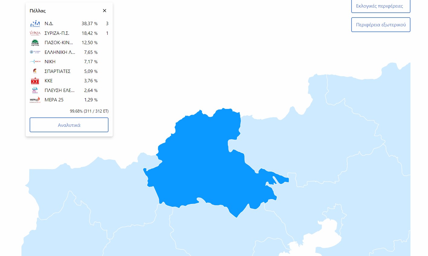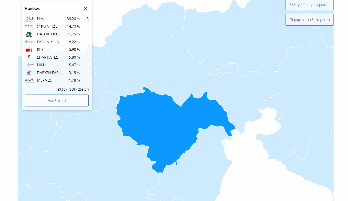 στην Ημαθία η ΝΔ απέκτησε ακόμα μια έδρα και έφτασε τις 3 από τις 2 του Μαΐου. Στον αντίποδα ο ΣΥΡΙΖΑ έχασε τη 1 έδρα που είχε καταλάβει πριν ένα μήνα περίπου (εκτός ο Άγγελος Τόλκας).