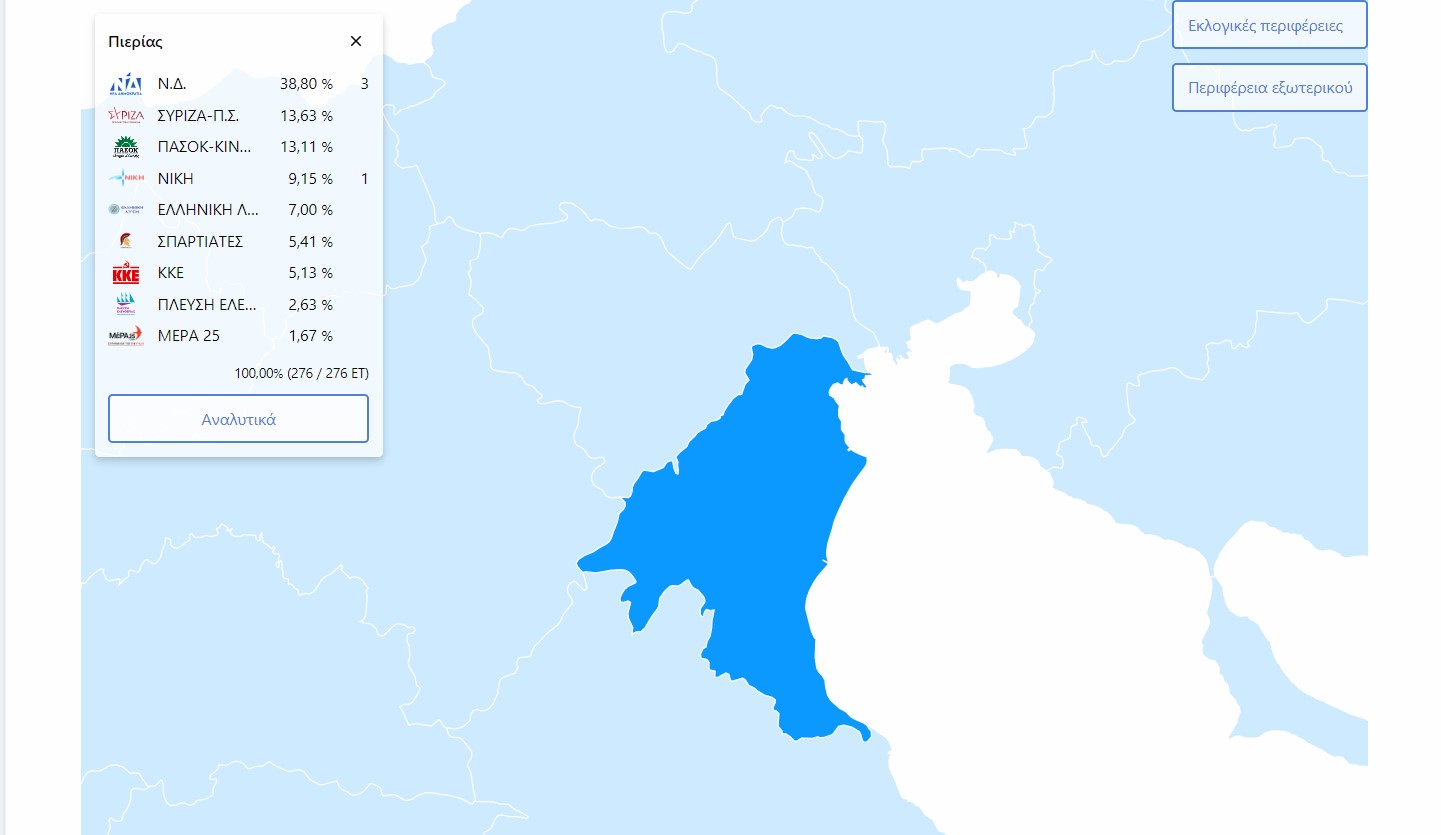 στην Πιερία ο ΣΥΡΙΖΑ έχασε τη 1 έδρα που είχε από τον Μάιο (εκτός ο Σάκης Γκούνας) και η ΝΙΚΗ «μπήκε στο παιχνίδι» με 1 αντίστοιχα.