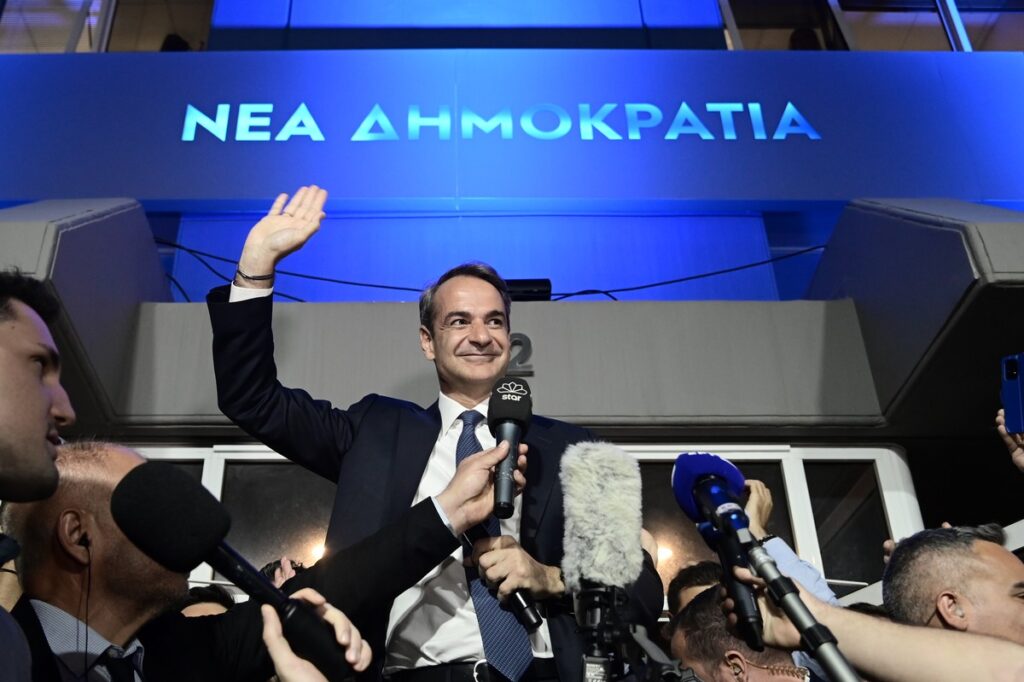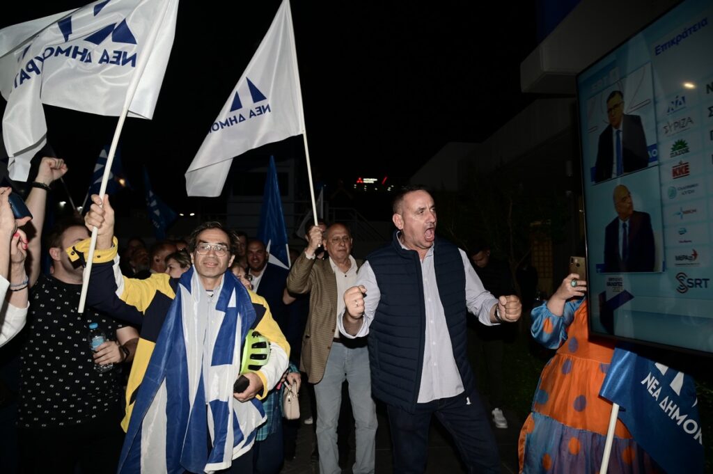 Στα γραφεία της ΝΔ το γλέντι και οι πανηγυρισμοί δεν σταματούσαν με ενθουσιώδεις οπαδούς να έχουν συγκεντρωθεί έξω από τα γραφεία και να πανηγυρίζουν. Ο Κυριάκος Μητσοτάκης γνώρισε την αποθέωση ενώ το σύνθημα που επικρατούσε ήταν «όλη η χώρα είναι μπλε».