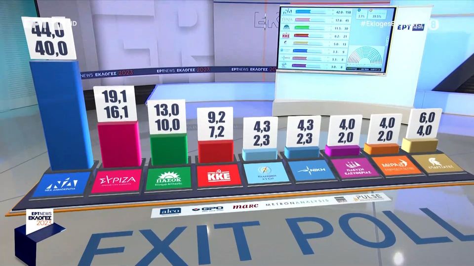 Τι δείχνουν τα πρώτα EXIT POLL μετά το κλείσιμο της κάλπης στις 19:00 για τις Εθνικές Εκλογές της 25ης Ιουνίου 2023.