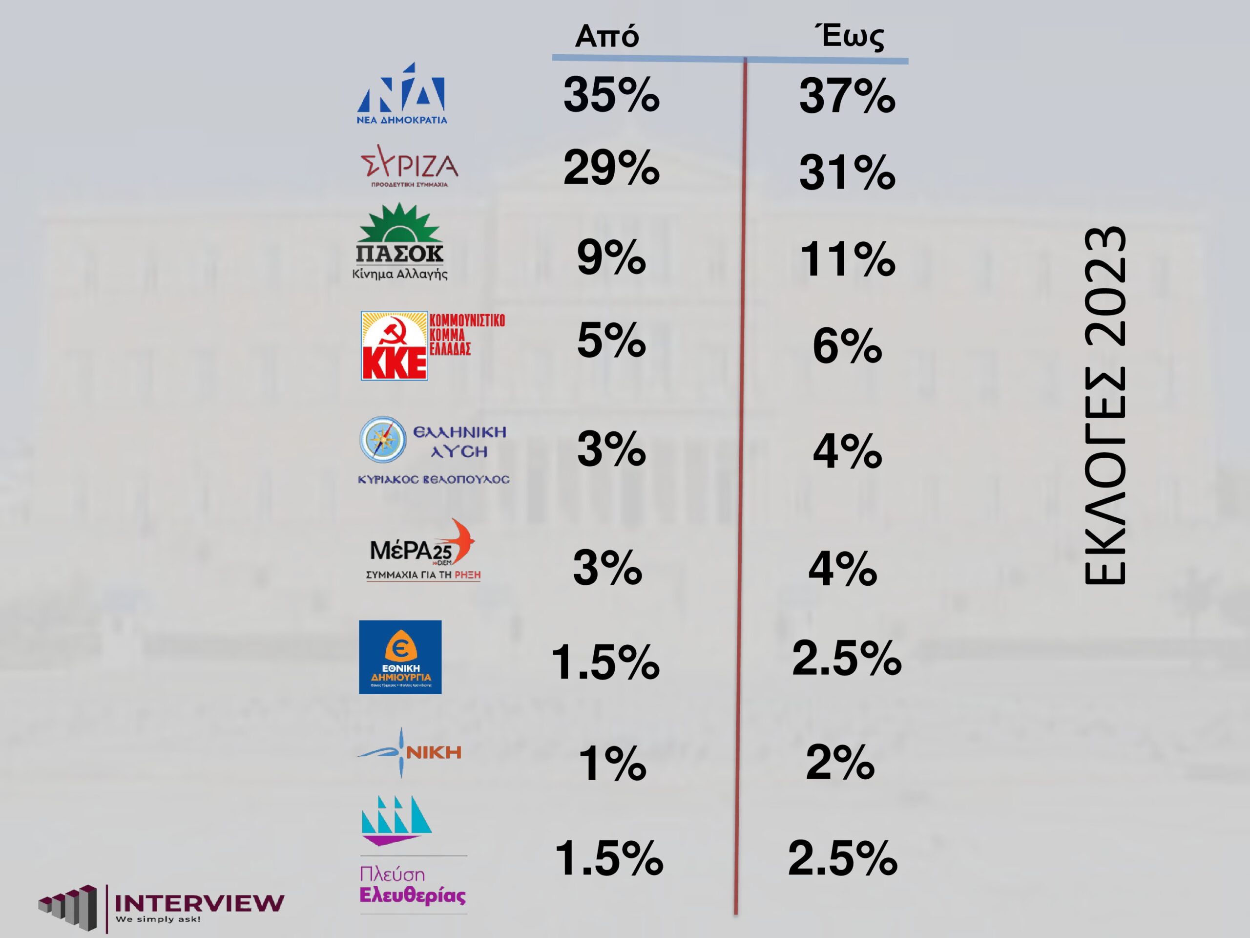 ΣΥΡΙΖΑ από 23,5% έως 27,5%