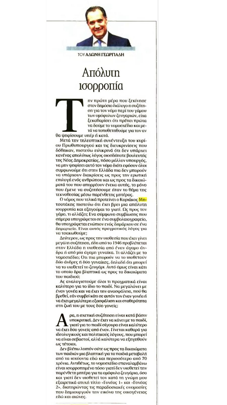 Ακολουθεί ολόκληρο το άρθρο του Άδωνι Γεωργιάδη: