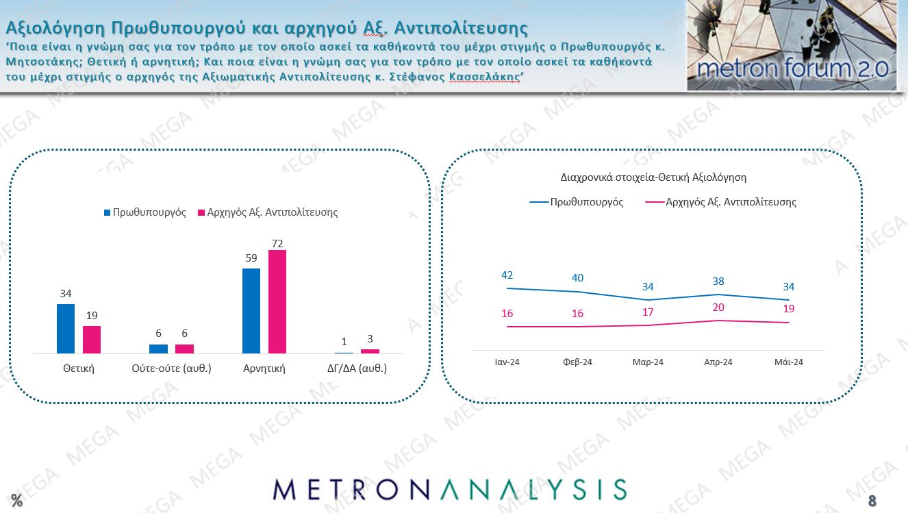 Νέα δημοσκόπηση πραγματοποιήθηκε από την Metron Analysis και παρουσιάστηκε στο κεντρικό δελτίο ειδήσεων του Mega το βράδυ της Τρίτης.