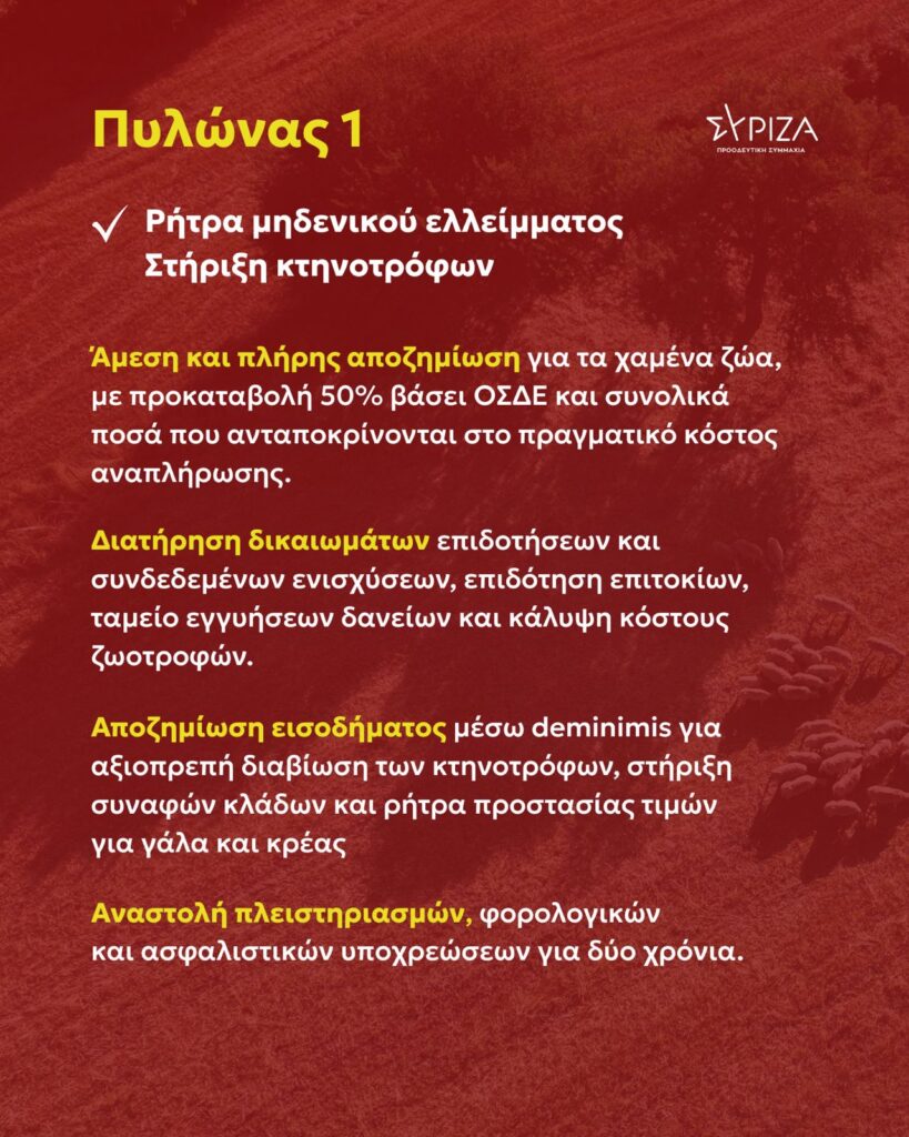 Ο ΣΥΡΙΖΑ ΠΣ καλεί την κυβέρνηση να εγκαταλείψει τα επικοινωνιακά πυροτεχνήματα και να υιοθετήσει το σχέδιο που προτείνει, γιατί η κτηνοτροφία δεν αντέχει άλλες καθυστερήσεις».