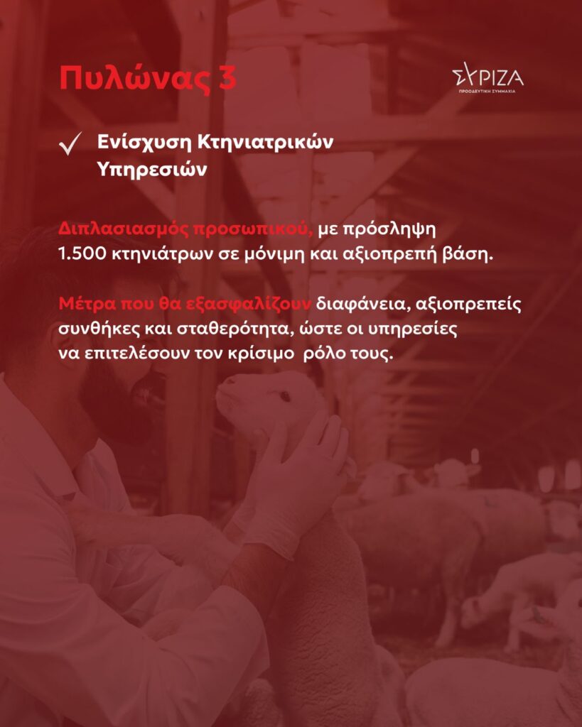 -Διπλασιασμός προσωπικού, με πρόσληψη 1.500 κτηνιάτρων σε μόνιμη και αξιοπρεπή βάση.