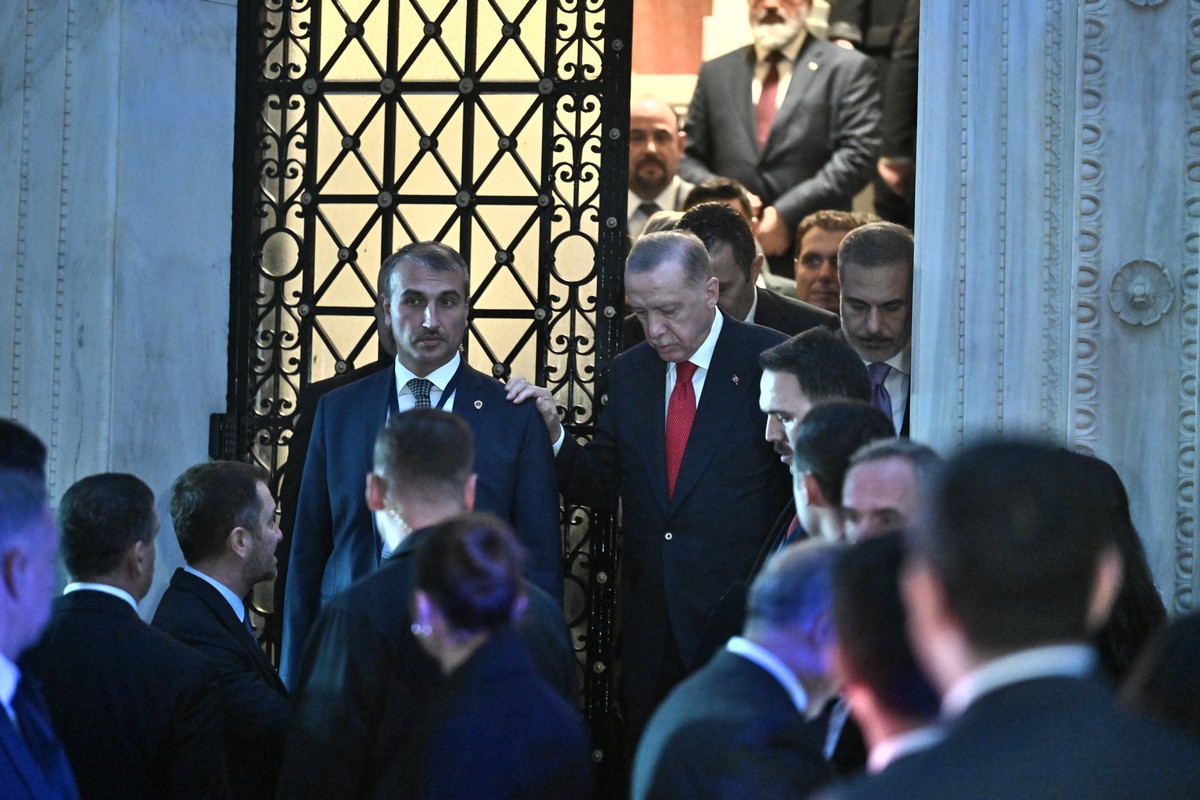 Η συνάντηση ολοκληρώθηκε νωρίτερα από όσο είχε προβλεφθεί και ο Ερντογάν έβαλε το χέρι στο μέρος της καρδιάς την ώρα που τον ξεπροβόδιζε η Πρόεδρος της Δημοκρατίας από το Προεδρικό Μέγαρο.