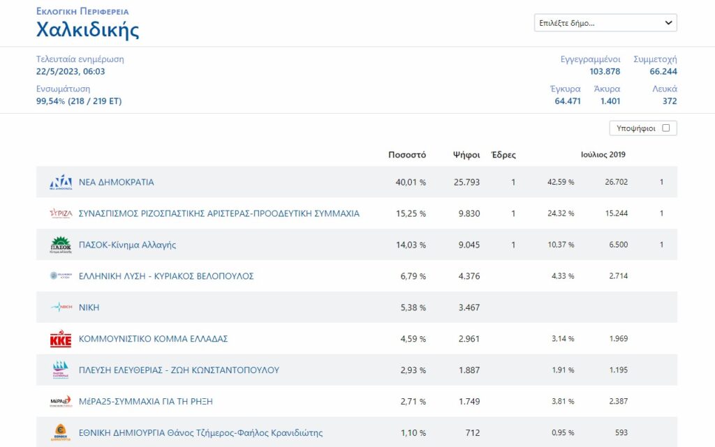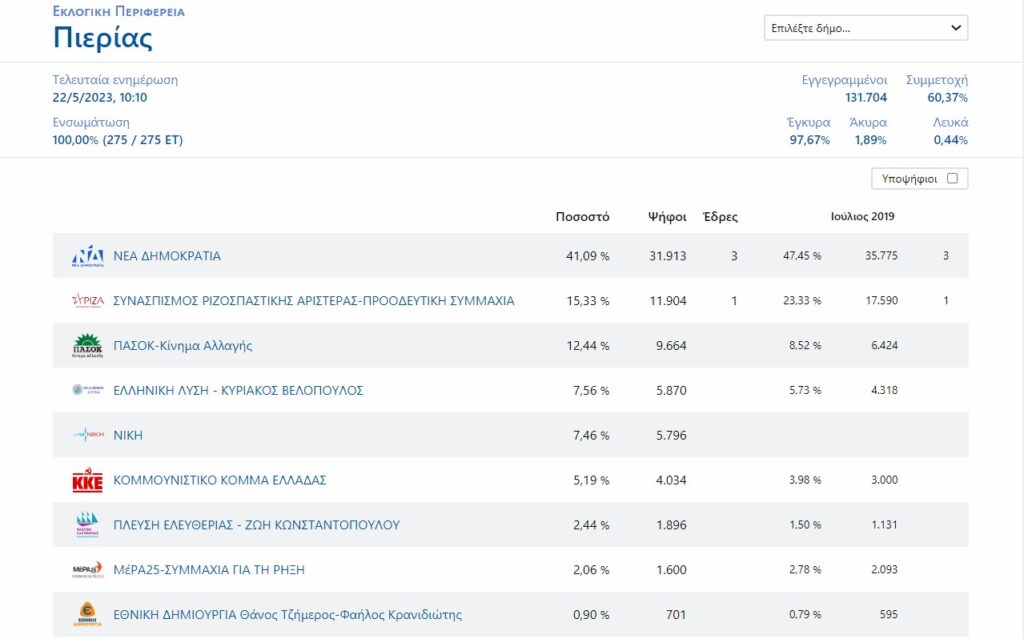 Στο 100% των εκλογικών τμημάτων στην Πιερία, εκλέγονται τρεις βουλευτές από τη ΝΔ και ένας από τον ΣΥΡΙΖΑ.