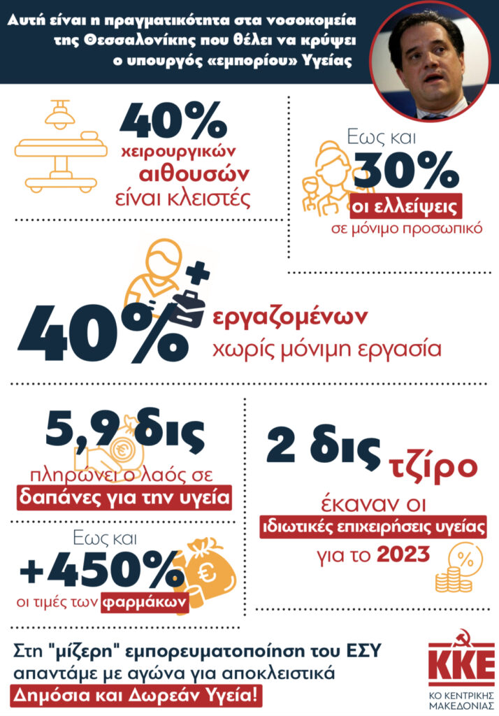 «Η διάλυση και εμπορευματοποίηση της δημόσιας υγείας έχει στόχο την εξοικονόμηση κρατικών πόρων για να παρέχονται στους επιχειρηματικούς ομίλους και την εξυπηρέτηση του κέρδους του ιδιωτικού τομέα υγείας»
