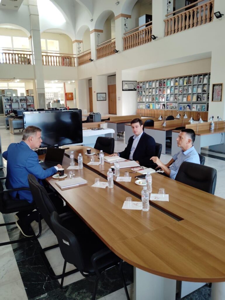 Ο κ. Μπεκίρης συνοδευόμενος από το Συντονιστή του Γραφείου στη Θεσσαλονίκη Γιάννη Παπαγεωργίου, επισκέφθηκε τις εγκαταστάσεις όπου στεγάζονται οι έδρες των σχολών του Διεθνούς Πανεπιστημίου και συνομίλησε με τον Πρύτανη κ. Σταμάτη Αγγελόπουλο. Οι δύο άντρες συνομίλησαν για θέματα που αφορούν στη λειτουργία αλλά και στην ανάπτυξη των τμημάτων των σχολών, ενώ ιδιαίτερη αναφορά έγινε στη μεγάλη προσπάθεια που γίνεται από πλευρά της κυβέρνησης για να εξασφαλιστεί φθηνή φοιτητική στέγη αλλά και νέες εστίες.