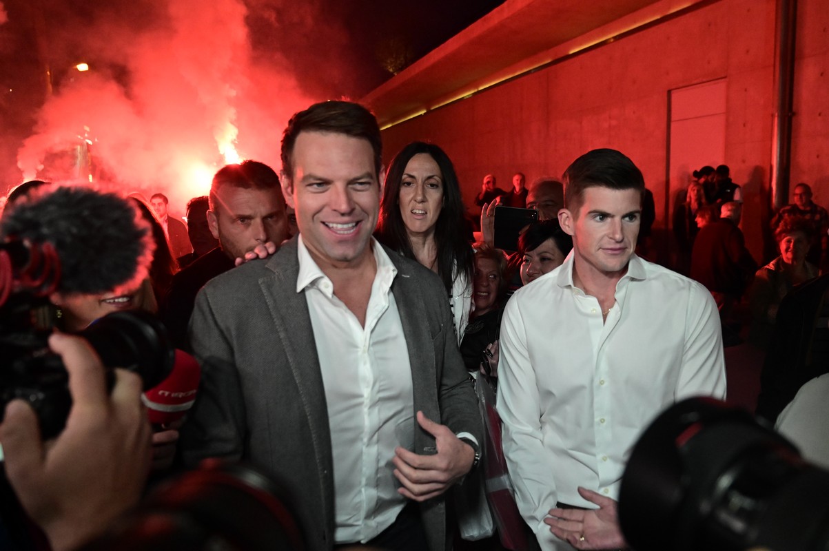Θερμή υποδοχή, με συνθήματα, αγκαλιές και καπνογόνα, επιφύλαξαν στον Στέφανο Κασσελάκη δεκάδες υποστηρικτές του, κατά την είσοδό του στα νέα του γραφεία στον Ταύρο.