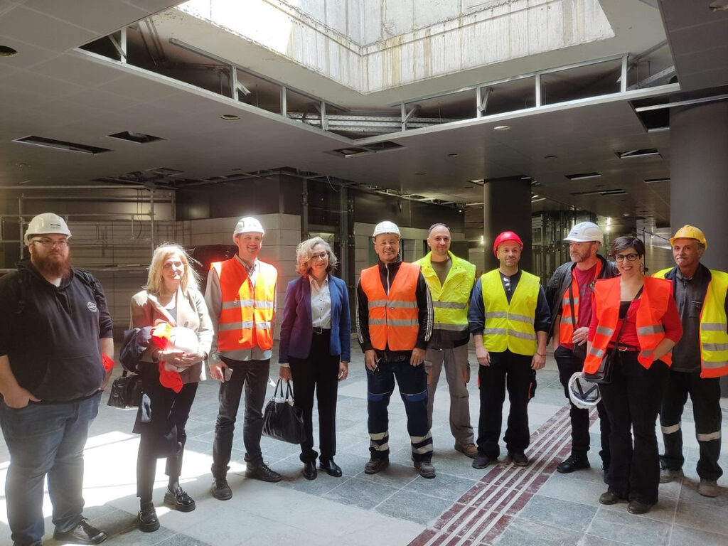 Αφού η ίδια και τα μέλη του ΜέΡΑ 25 διαπίστωσαν την πραγματική πρόοδο των έργων , που απέχει παρασάγγας από την επικοινωνιακή εικόνα που θέλει να προβάλλει η Κυβέρνηση, είχαν και συνάντηση με εκπροσώπους του Σωματείου Εργαζομένων του Μετρό Θεσσαλονίκης, μεταξύ των οποίων ο Πρόεδρος Μάκης Μιχαλόπουλος και ο Γενικός Γραμματέας Γιώργος Σπανούδης.