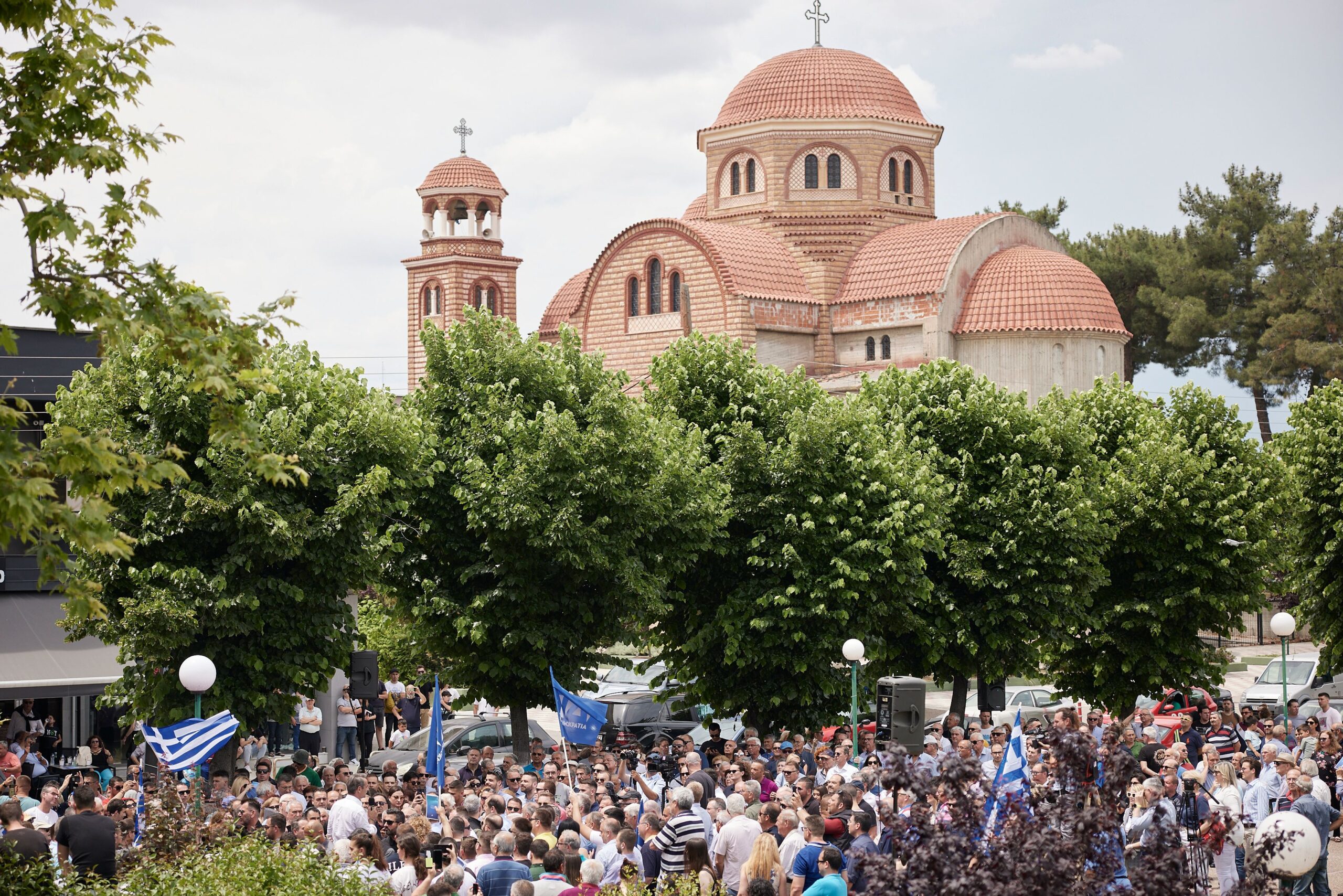 Πρόεδρος της Νέας Δημοκρατίας, Κυριάκος Μητσοτάκης, σε συγκέντρωση πολιτών στα Κουφάλια Θεσσαλονίκης, μεταξύ άλλων, ανέφερε: «Εν μέσω μεγάλων δυσκολιών κρατήσαμε την πατρίδα μας όρθια, βάλαμε την οικονομία μας σε μια τροχιά ανάπτυξης, προστατεύσαμε και προστατεύουμε τα σύνορά μας, γιατί η πατρίδα μας έχει σύνορα και στον αέρα και στη θάλασσα και στη στεριά, ενισχύσαμε τις ένοπλες δυνάμεις μας, η φωνή της Ελλάδος ακούγεται και πάλι με αυτοπεποίθηση στο εξωτερικό. Είμαι σίγουρος ότι έχουμε μαζί μας πολλούς αγρότες παραγωγούς. Εσείς ξέρετε καλύτερα από εμάς αν η Κυβέρνηση αυτή στήριξε τον πρωτογενή τομέα, πώς μειώσαμε τη φορολογία για τους αγρότες οι οποίοι συνεργάζονται, ποιοι ήταν κοντά σας στις κρίσεις του Covid, ποιοι έβγαλαν έξτρα χρήματα για τον πόλεμο για την Ουκρανία. Ποιοι στάθηκαν κοντά σας για αποζημιώσεις μετά από φυσικές καταστροφές. Παραπάνω από 1 δισεκατομμύριο ευρώ πληρώσαμε σε ζημιές από φυσικές καταστροφές. Μόνο τα 500 εκατομμύρια ήρθαν από τον ΕΛΓΑ, τα υπόλοιπα 500 εκατομμύρια ήρθαν από τον κρατικό προϋπολογισμό».