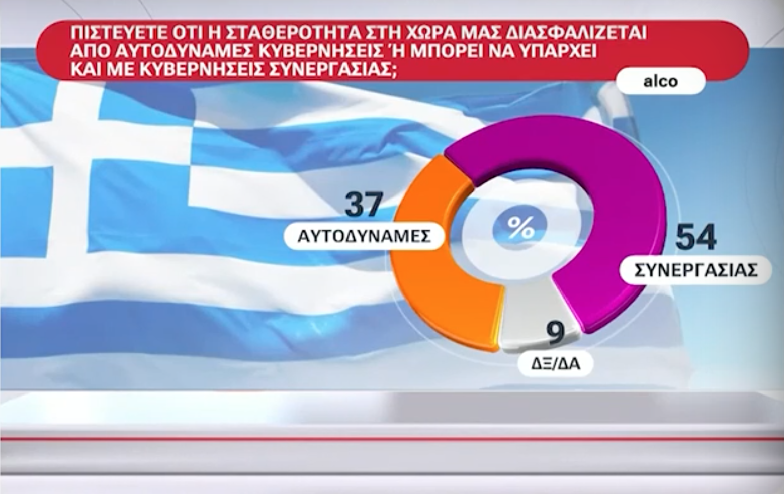 Νέα δημοσκόπηση ALCO: Πτώση για ΝΔ, ΠΑΣΟΚ και ΣΥΡΙΖΑ – Ισχυρή άνοδος για την Πλεύση Ελευθερίας (ΦΩΤΟ – VIDEO)