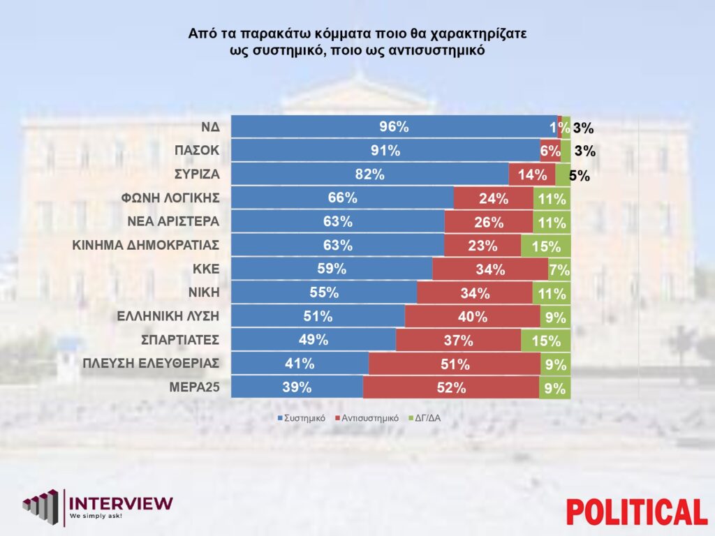 Νέα δημοσκόπηση: Τα σημαντικά ευρήματα για ΝΔ και αντιπολίτευση – Ποια κόμματα θεωρούν συστημικά οι πολίτες