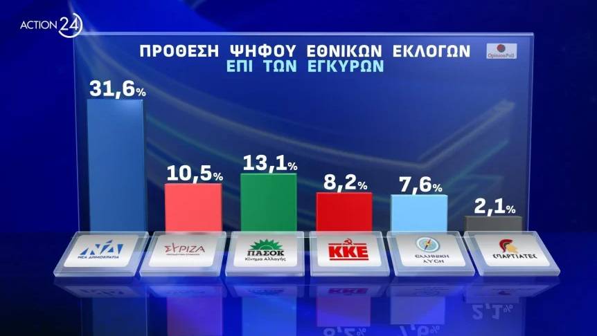 Νέα δημοσκόπηση πραγματοποίησε η Opinion Poll για λογαριασμό του Action24.