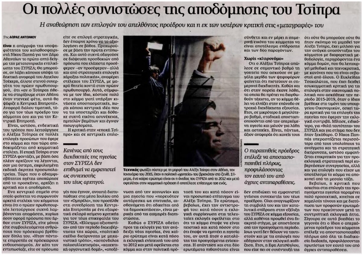 Σε δημοσίευμα της εφημερίδας «Καθημερινή» απάντησε ο κοινοβουλευτικός εκπρόσωπος του ΣΥΡΙΖΑ-Προοδευτική Συμμαχία και υποψήφιος πρόεδρος του κόμματος, Νίκος Παππάς, το οποίο αναφέρεται στο δίλημμα που προκύπτει στο κόμμα της Κουμουνδούρου ενόψει των εσωκομματικών διεργασιών σε αυτό, κάνοντας λόγο για προσπάθεια «μηδενισμού της ιστορικής συμβολής διακυβέρνησής του».