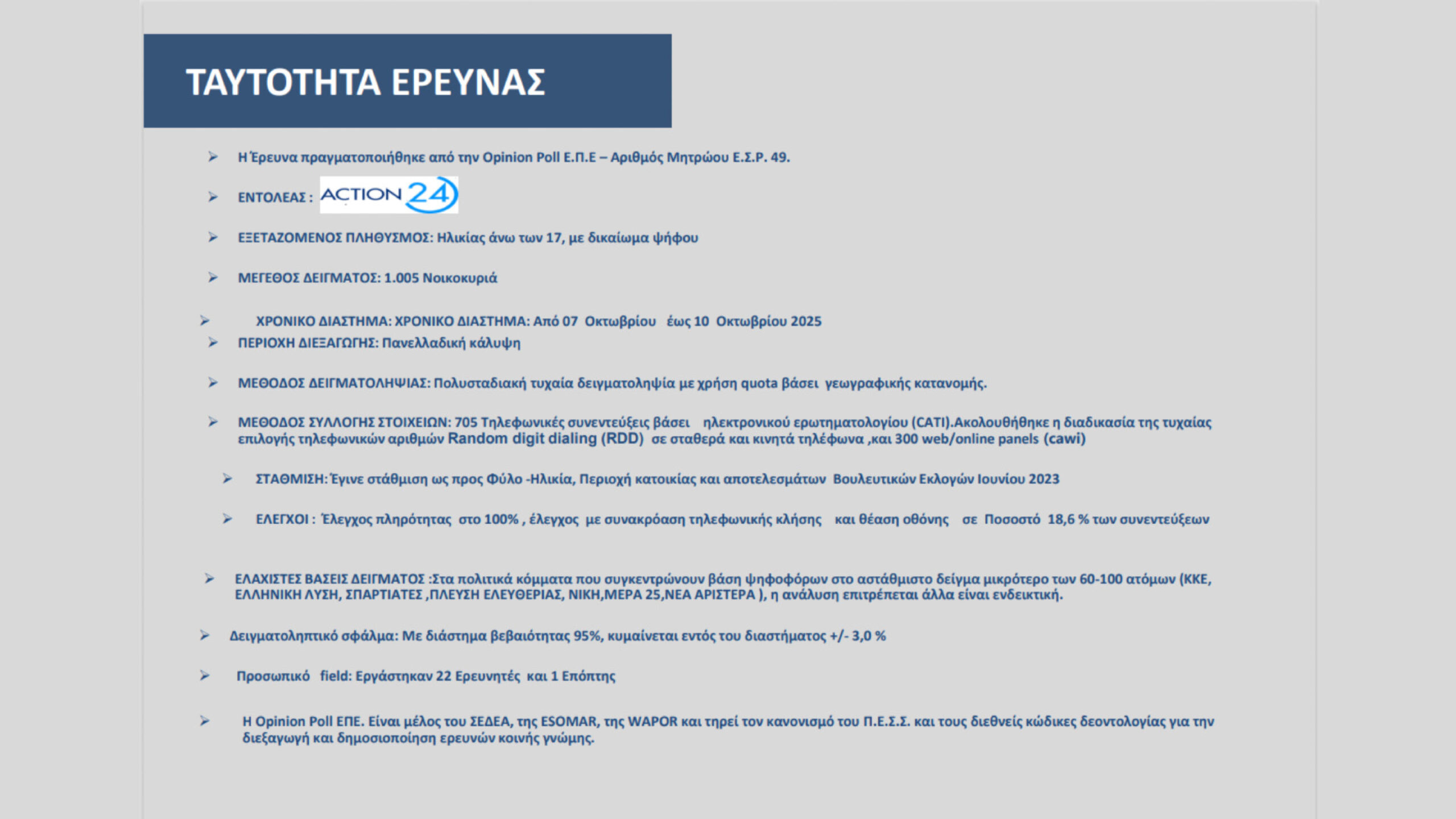 Τα κυριότερα συμπεράσματα από την πολιτική έρευνα της Opinion Poll για το Action 24.
