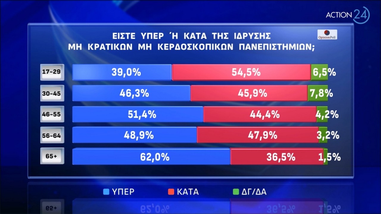 Opinion Poll: Υπέρ των μη κρατικών πανεπιστημίων το 54,1% (VIDEO)