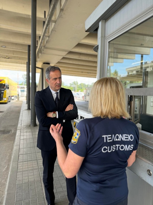 Επίσκεψη στα τελωνεία του Προμαχώνα και των Ευζώνων πραγματοποίησε σήμερα ο υφυπουργός Εσωτερικών, αρμόδιος για θέματα Μακεδονίας – Θράκης, Στάθης Κωνσταντινίδης, όπου και συζήτησε τις δυνατότητες βελτίωσης των υποδομών και του υλικοτεχνικού εξοπλισμού, με τους τελωνειακούς και αστυνομικούς υπαλλήλους που υπηρετούν σε αυτούς.