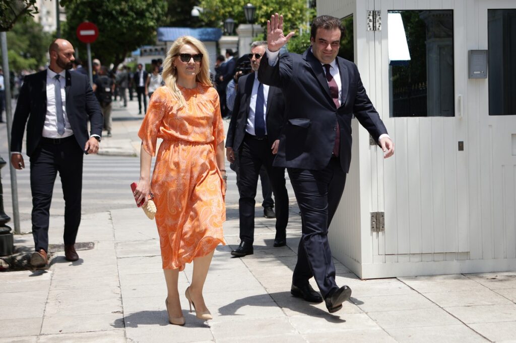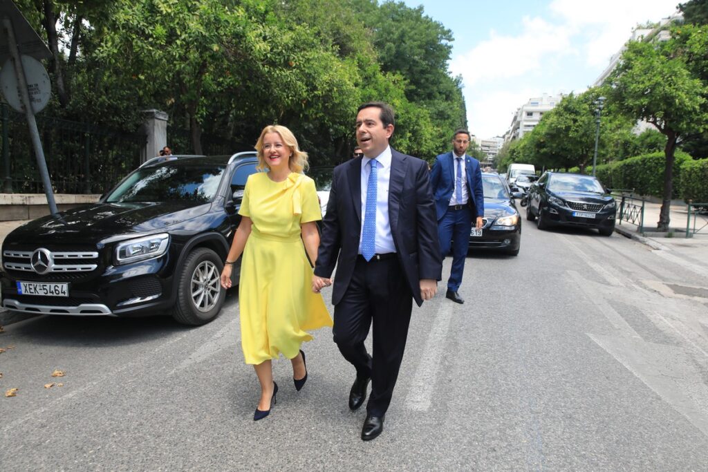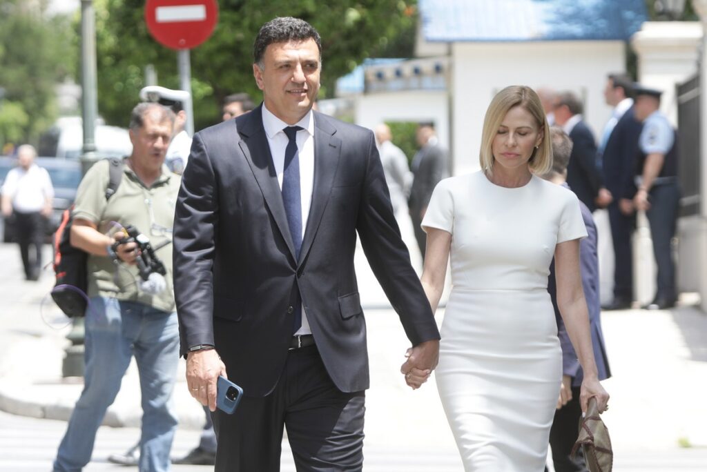 Ο νέος υπουργός Κλιματικής Κρίσης και Πολιτικής Προστασίας, Βασίλης Κικίλιας με την σύζυγό του Τζένη Μπαλατσινού