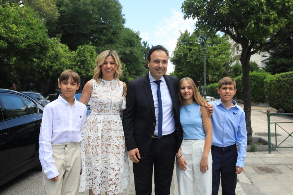 Ο υφυπουργός Ανάπτυξης Μάξιμος Σενετάκης και η οικογένειά του