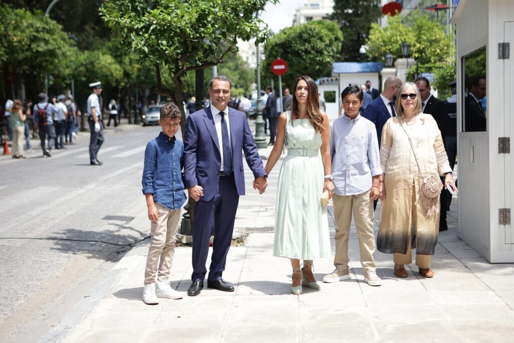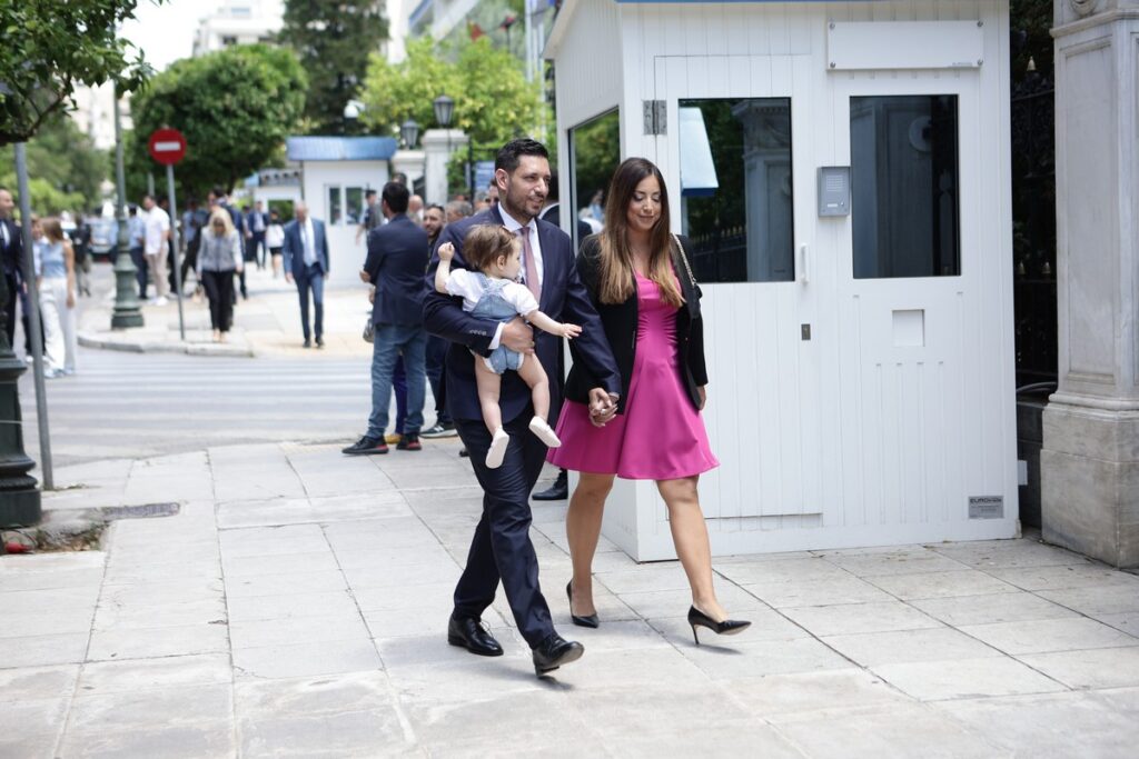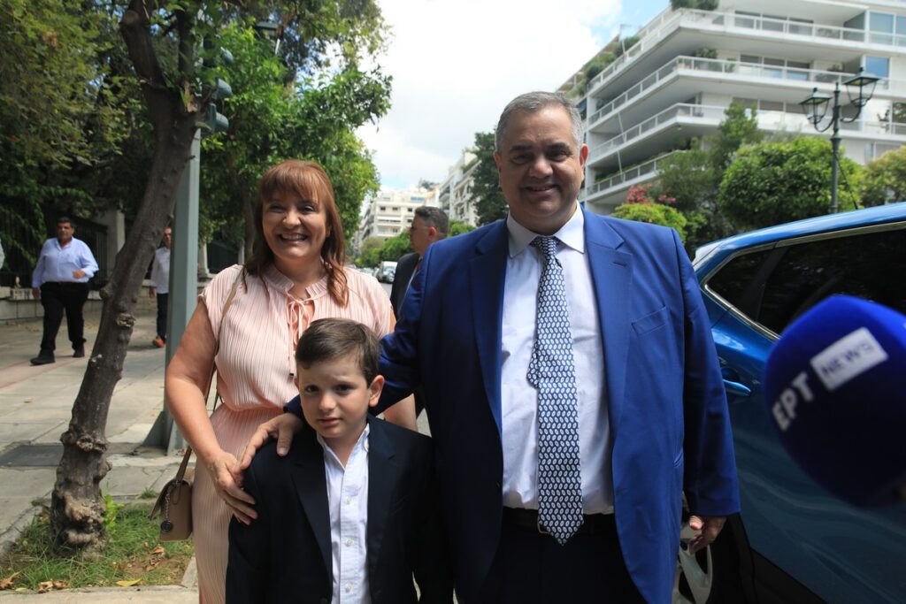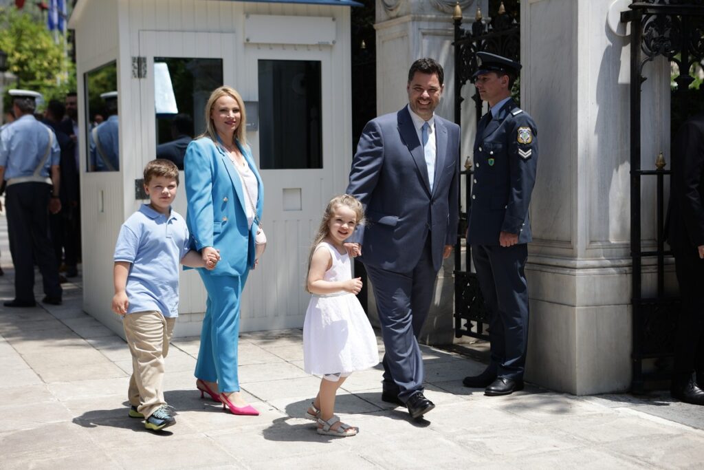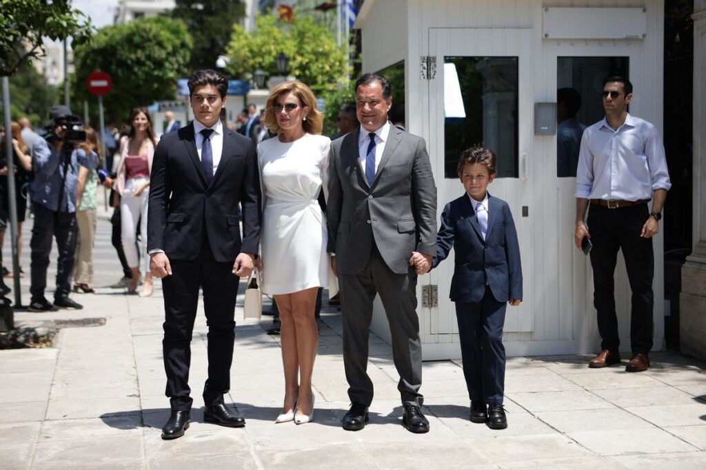 O νέος υπουργός Οικονομικών Κωστής Χατζηδάκης με την σύζυγό του Πόπη Καλαϊτζή και τον γιο τους