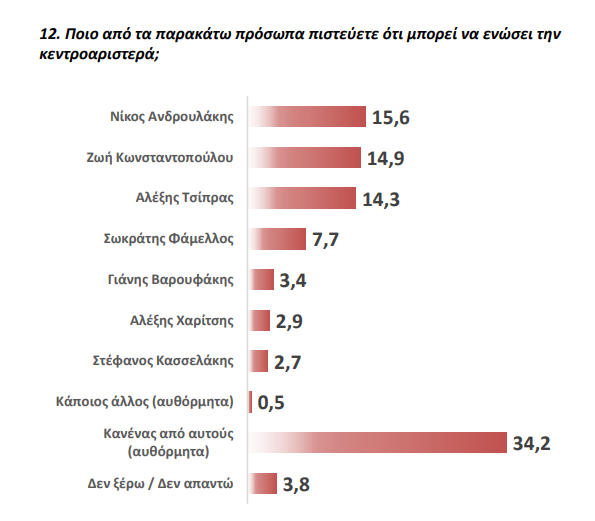Παράλληλα μετά τον “κανένα” που κερδίζει πλέον σε όλες τις δημοσκοπήσεις τον Κυριάκο Μητσοτάκη, ο “κανένας” κερδίζει και όλους τους αρχηγούς της Κεντροαριστεράς στο ερώτημα ποιος μπορεί να την ενώσει.