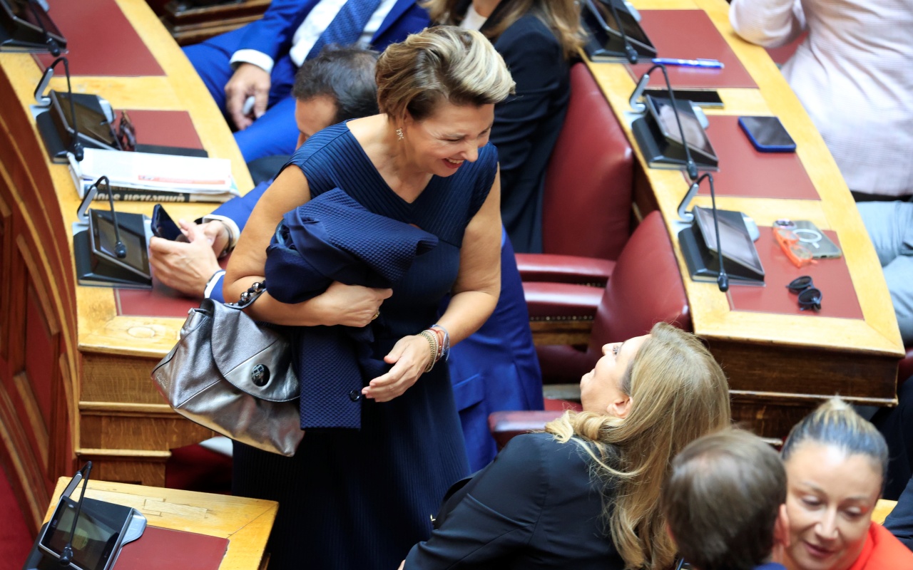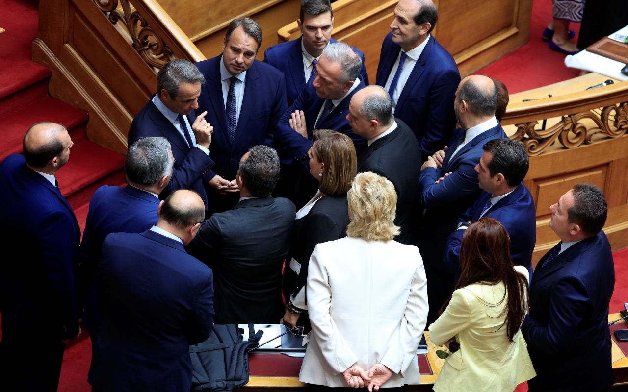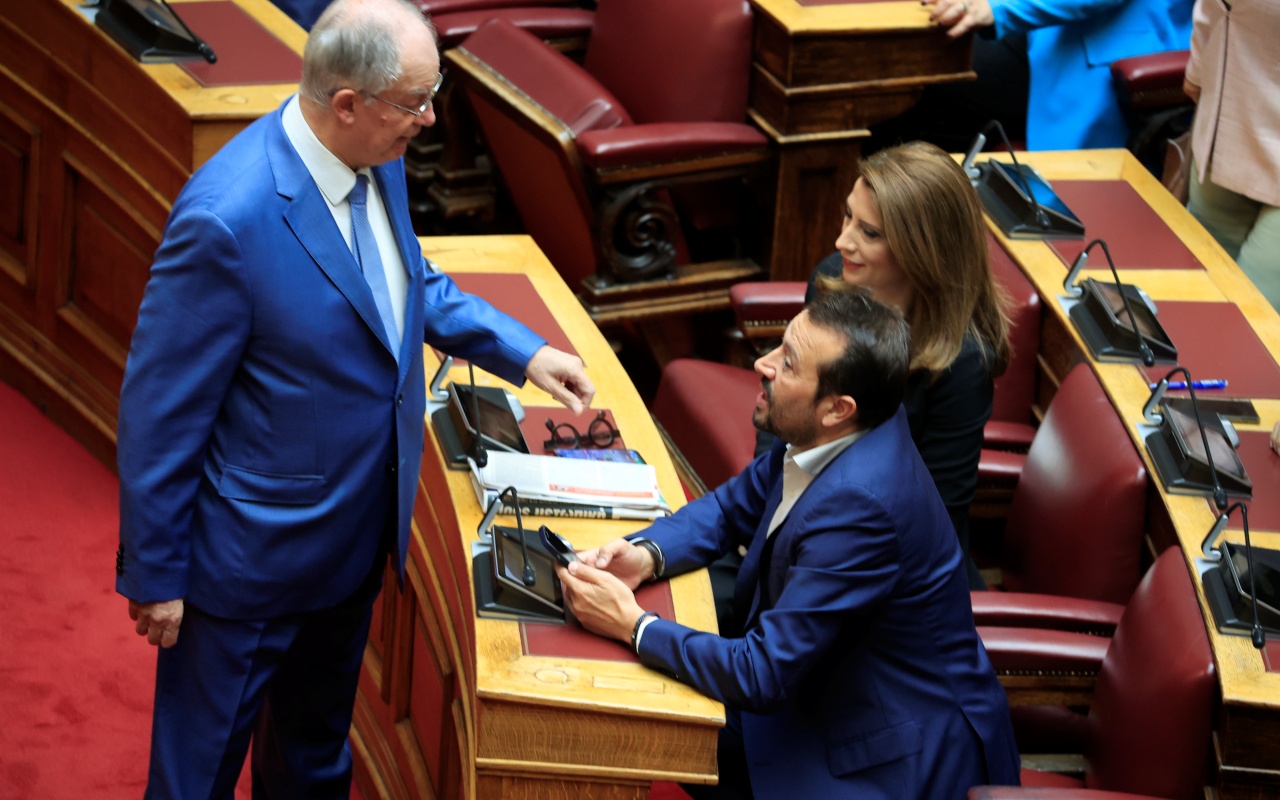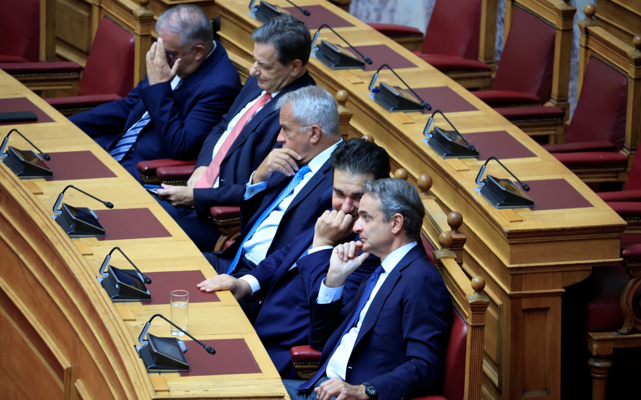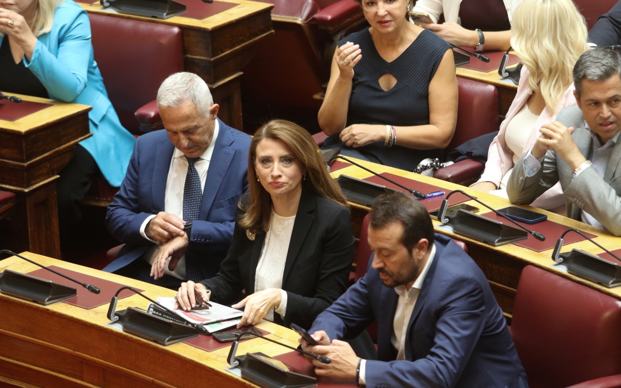 Στα υπουργικά έδρανα παρόντες ήταν ο υπουργός Εσωτερικών Θεόδωρος Λιβάνιος, ο υπουργός Επικρατείας Μάκης Βορίδης, ο υπουργός Περιβάλλοντος και Ενέργειας Θεόδωρος Σκυλακάκης, ο υπουργός Ανάπτυξης Τάκης Θεοδωρικάκος.