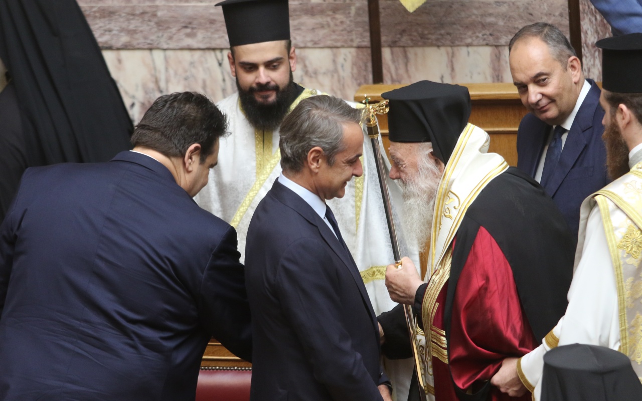 (ΓΙΩΡΓΟΣ ΚΟΝΤΑΡΙΝΗΣ/EUROKINISSI)Ο Αρχιεπισκοπος Ιερωνυμος και μελη της Ιερας Συνοδου τελεσαν σημερα τον καθιερωμενο Αγιασμο του Κοινοβουλευτικου Σωματος με αφορμη την εναρξη της νεας Κοινοβουλευτικης Περιοδου. Πριν την επισημη τελετη ο Αρχιεπισκοπος και τα μελη της Ιερας Συνοδου εγιναν δεκτοι απο τον Προεδρο της Βουλης Κωστα Τασουλα στο γραφειο του . ΦΩΤΟ ΧΡΗΣΤΟΣ ΜΠΟΝΗΣ//ΙΕΡΑ ΣΥΝΟΔΟΣΑγιασμός για την έναρξη των εργασιών της Β’ Συνόδου από τον Αρχιεπίσκοπο Αθηνών και Πάσης Ελλάδος Ιερώνυμο και τα μέλη της Ιεράς Συνόδου, Δευτέρα 7 Οκτωβρίου 2024.