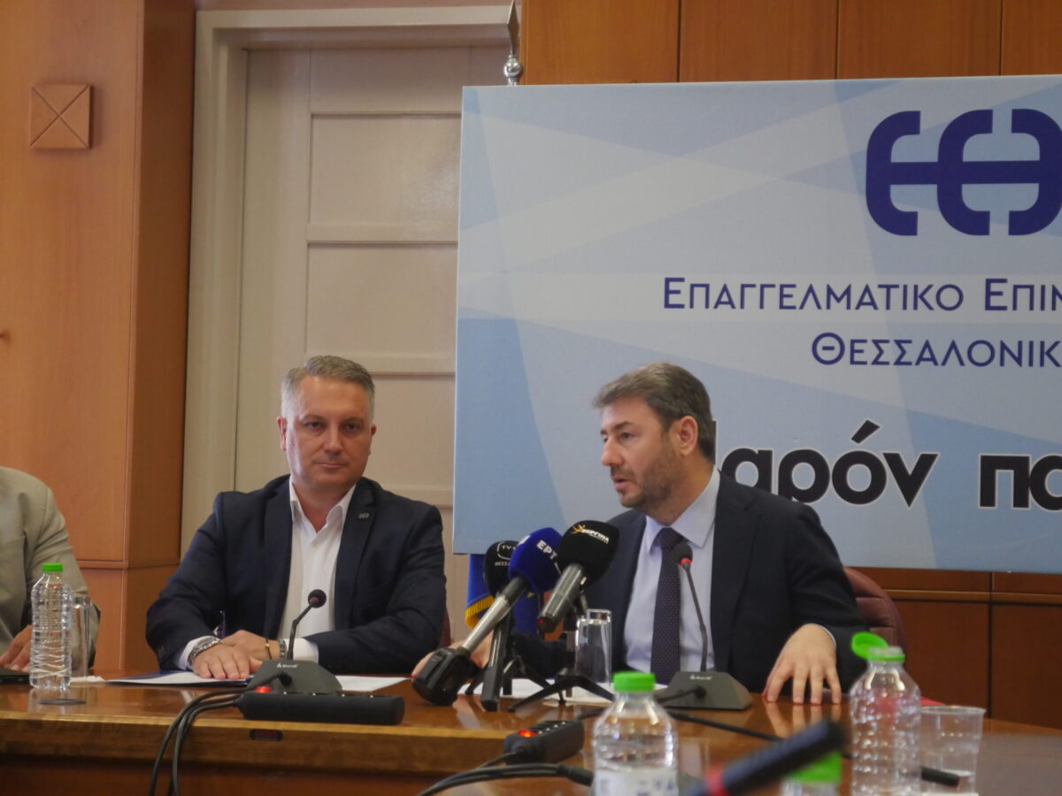 Τον Πρόεδρο του ΠΑΣΟΚ, Νίκο Ανδρουλάκη υποδέχθηκε στο Επαγγελματικό Επιμελητήριο Θεσσαλονίκης ο Πρόεδρος του φορέα Κυριάκος Μερελής, με τον οποίο πραγματοποίησε συνάντηση εργασίας.