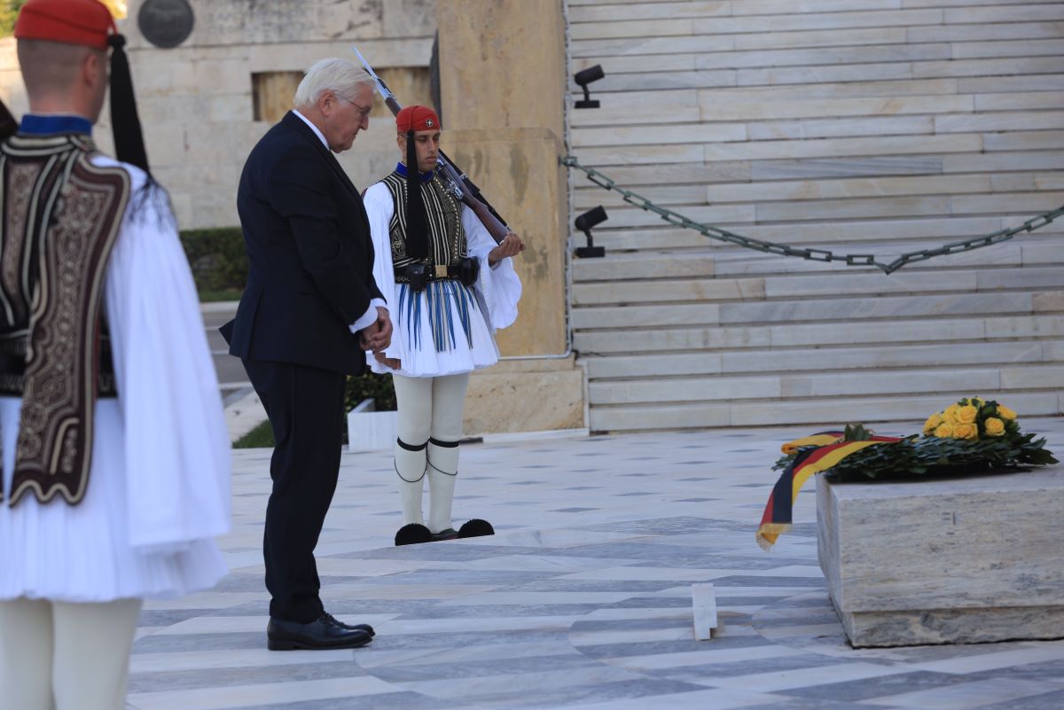Η Κατερίνα Σακελλαροπούλο έθεσε στον Πρόεδρο της Γερμανίας το θέμα των γερμανικών επανορθώσεων, τονίζοντας ότι το ζήτημα είναι εκκρεμές και ότι είναι σημαντικό να τίθενται επί τάπητος θέματα του παρελθόντος.