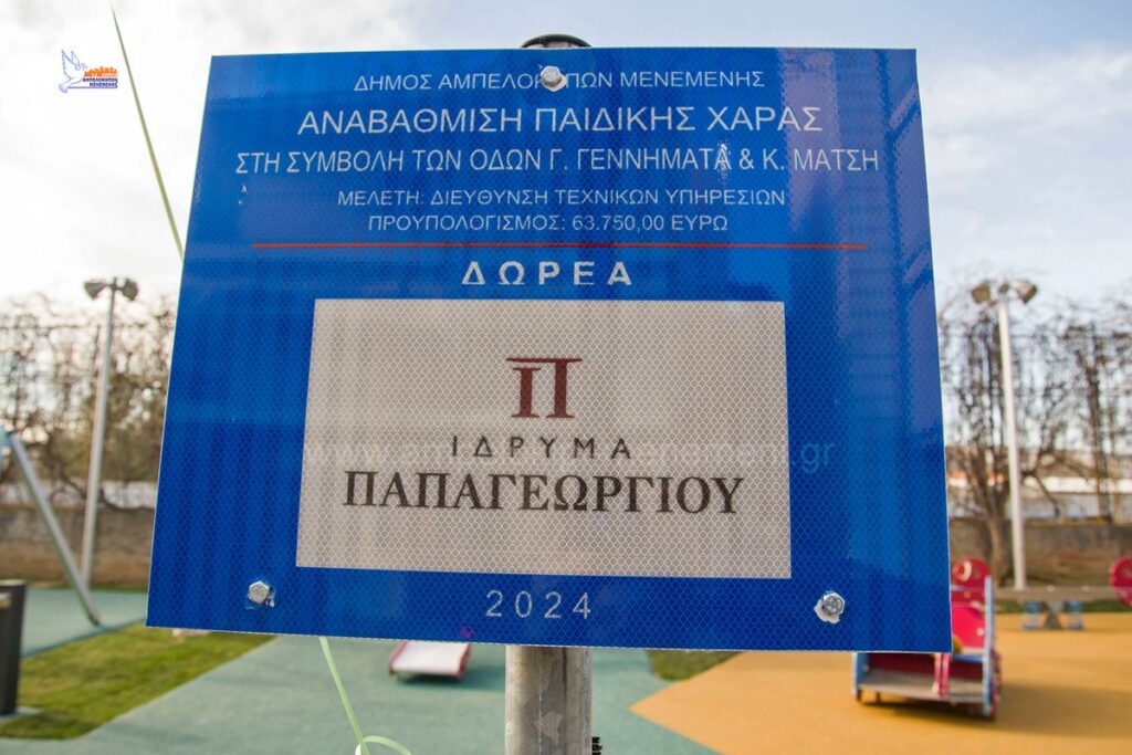 Πραγματοποιήθηκαν τα εγκαίνια της αναβαθμισμένης παιδικής χαράς στη συμβολή των οδών Γ. Γεννηματά και Κ. Μάτση στο Δήμο Αμπελοκήπων – Μενεμένης.