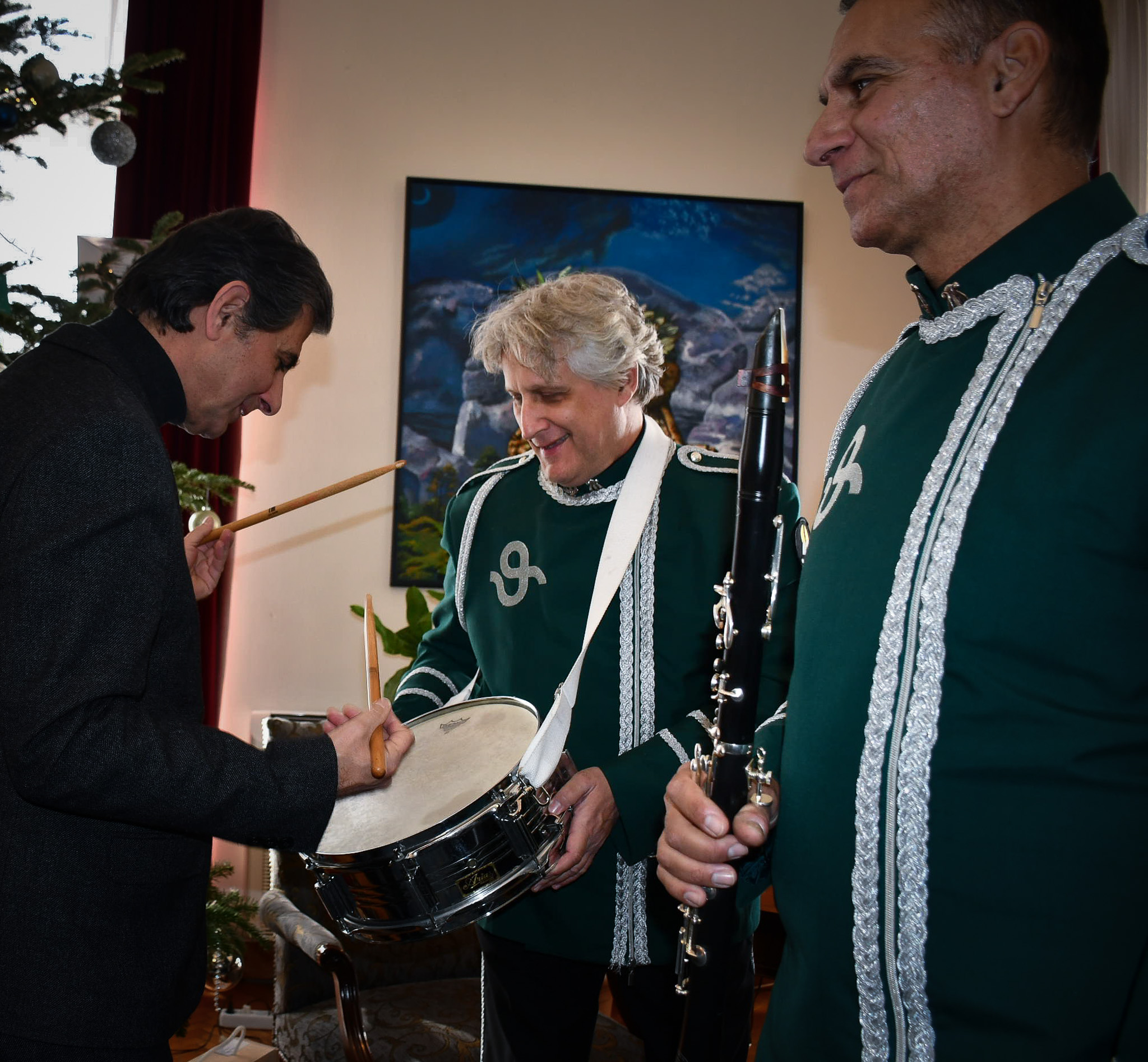 Τα Χριστουγεννιάτικα κάλαντα στο Υπουργείο Εσωτερικών (Τομέας Μακεδονίας-Θράκης) έψαλλαν μπάντες, χορωδίες και πολιτιστικοί σύλλογοι και αντάλλαξαν ευχές με τον Κωνσταντίνο Γκιουλέκα, σήμερα, Τρίτη, 24 Δεκεμβρίου 2024