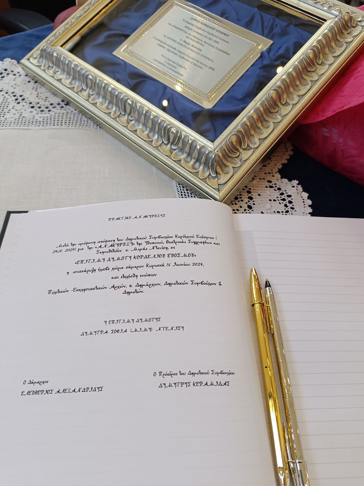 «Σας υποδεχόμαστε με μία μεγάλη αγκαλιά, αντίστοιχη με αυτήν που ανοίξατε εσείς για όλους εμάς τους Έλληνες προσφυγικής καταγωγής από την καθ’ ημάς Ανατολή. Αναδείξατε με το έργο σας τον ελληνικό πολιτισμό στη γη της Ιωνίας και τα τραγικά γεγονότα που βίωσαν οι πρόγονοί μας πριν από εκατό χρόνια. Από σήμερα είστε επίτιμη δημότης Κορδελιού – Ευόσμου και συνδημότισσα όλων μας. Καλώς ήρθατε στον προσφυγικό Δήμο Κορδελιού – Ευόσμου. Τον δεύτερο μεγαλύτερο της Βορείου Ελλάδος, με το μικρότερο δείκτη γήρανσης στον πληθυσμό του και τους 18.500 μαθητές. Οι κάτοικοι του δήμου μας ποτέ δεν ξέχασαν τις πατρίδες που άφησαν πίσω, ποτέ δε λησμόνησαν το χρέος τους να μεταλαμπαδεύσουν στις επόμενες γενιές τον πόθο και την αγάπη γι’ αυτές. Εμείς οι απόγονοί τους με αυτές τις ιστορίες μεγαλώσαμε».