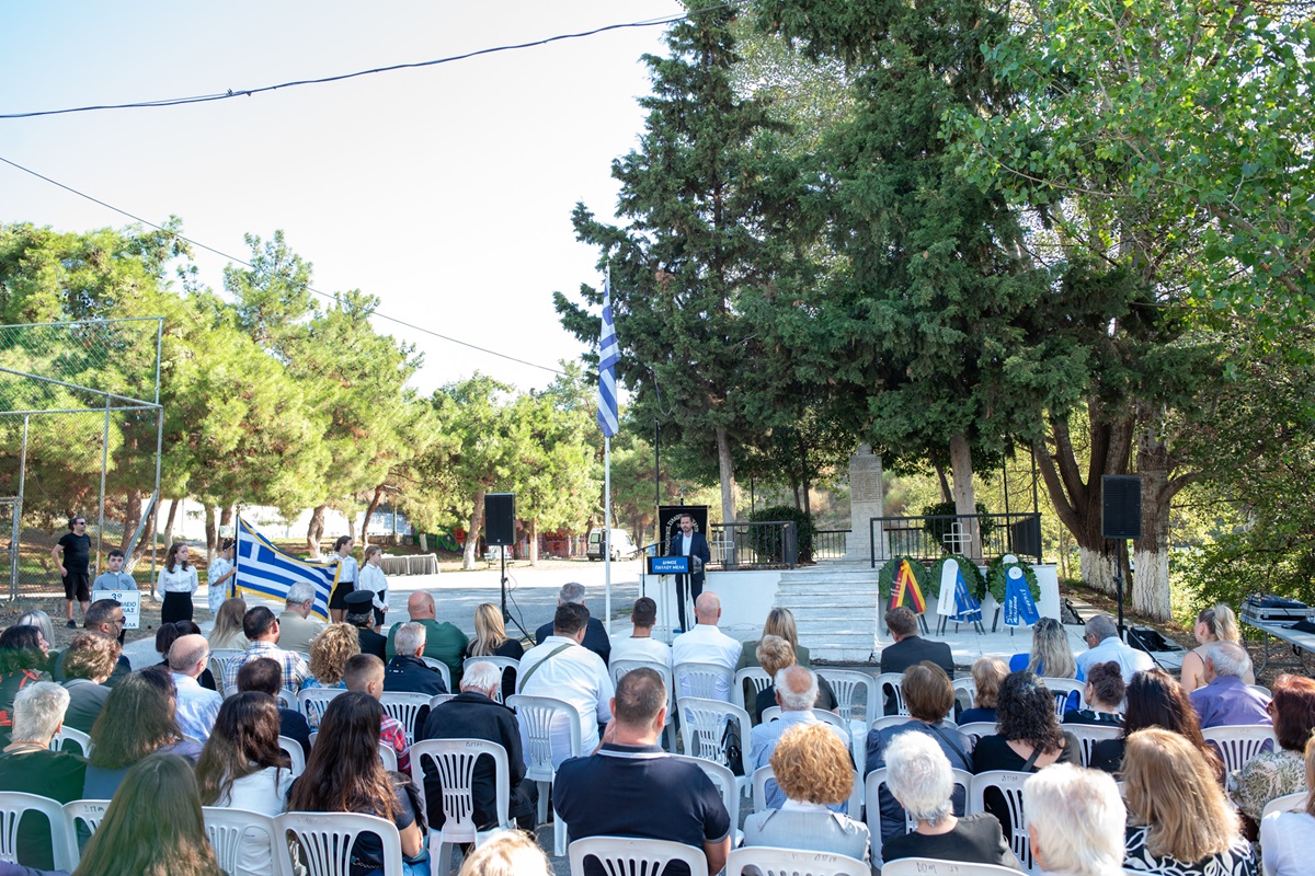 Την αναδρομή στα γεγονότα εκείνης της ημέρας που σημάδεψαν την ιστορική μνήμη παρουσίασε η εντεταλμένη σύμβουλος Πολιτισμού, Αδαμαντία Αγκούτογλου. Οι παρευρισκόμενοι κράτησαν ενός λεπτού σιγή στη μνήμη των νεκρών και στη συνέχεια έψαλαν τον Εθνικό Ύμνο.