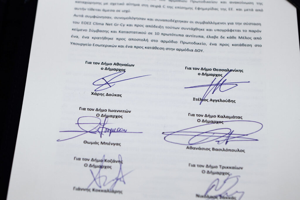 Στο διήμερο συνέδριο με θέμα «Η ανθεκτικότητα της Θεσσαλονίκης στην Κλιματική Κρίση 2025 – 2030: 22 σχέδια για την Αστική Θωράκιση & την Κλιματική Ουδετερότητα», που οργάνωσε ο Δήμος Θεσσαλονίκης στις 13 και 14 Ιανουαρίου, έγινε η πρώτη συνάντηση των εταίρων και αποφασίστηκε η συγκρότηση Ευρωπαϊκού Ομίλου Εδαφικής Συνεργασίας με τίτλο «Δίκτυο Συνεργασίας για την Κλιματική Ουδετερότητα των Πόλεων της Ελλάδας και της Κύπρου» (ClimaNet Gr-Cy). Η απόφαση αυτή σφραγίστηκε στην Αθήνα με την υπογραφή Συμφώνου Συνεργασίας, με το οποίο ο νέος εταιρικός φορέας πήρε σάρκα και οστά.