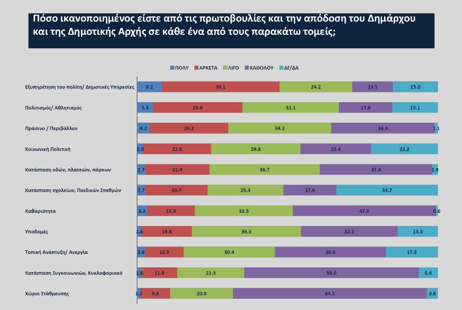 Το πολιτικό αποτύπωμα αυτής της αξιολόγησης είναι ότι μόλις το 24% δηλώνει ότι θέλει την επανεκλογή του νυν Δημάρχου, με το 56% να θέλει εκλογή νέου προσώπου